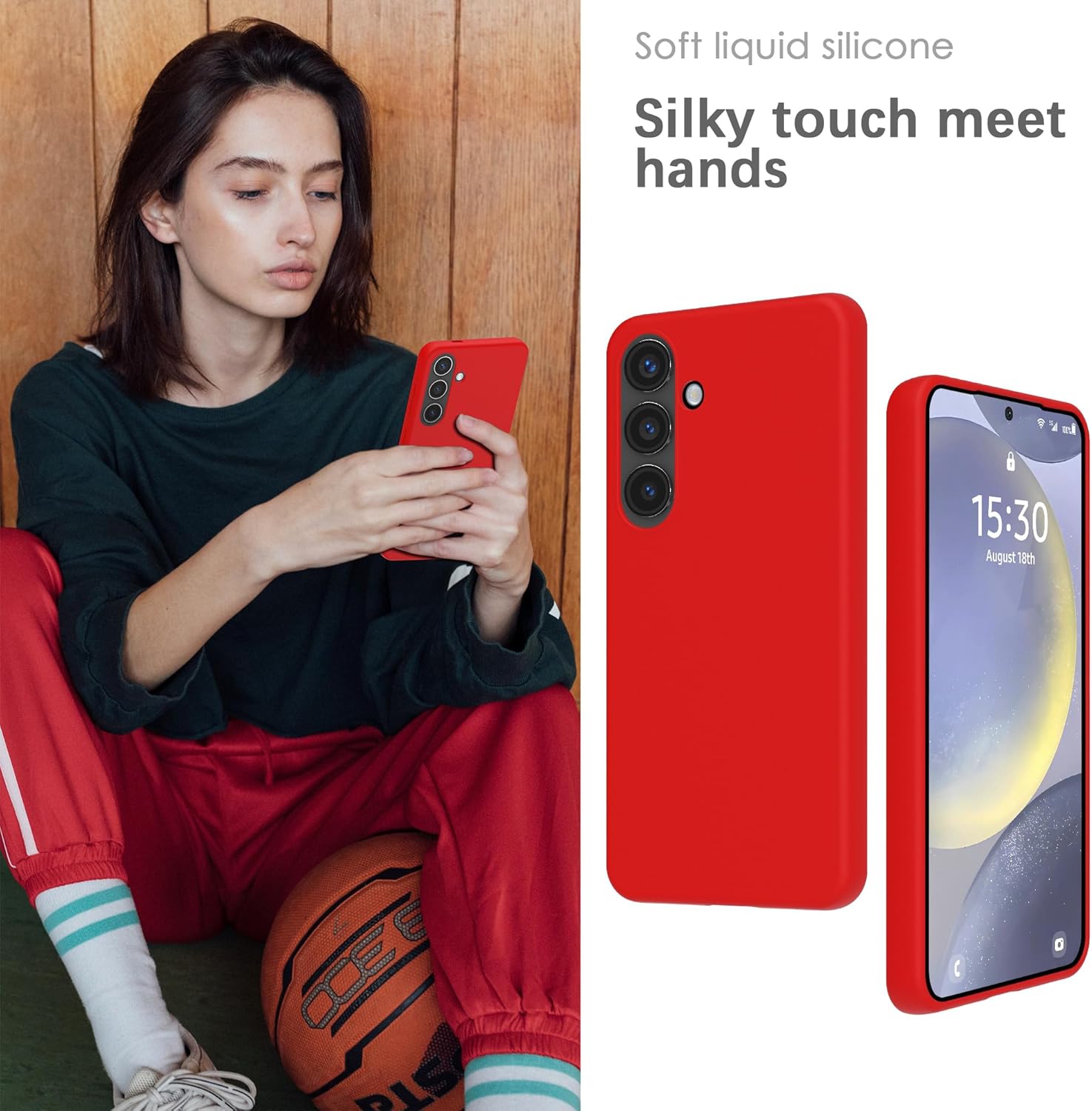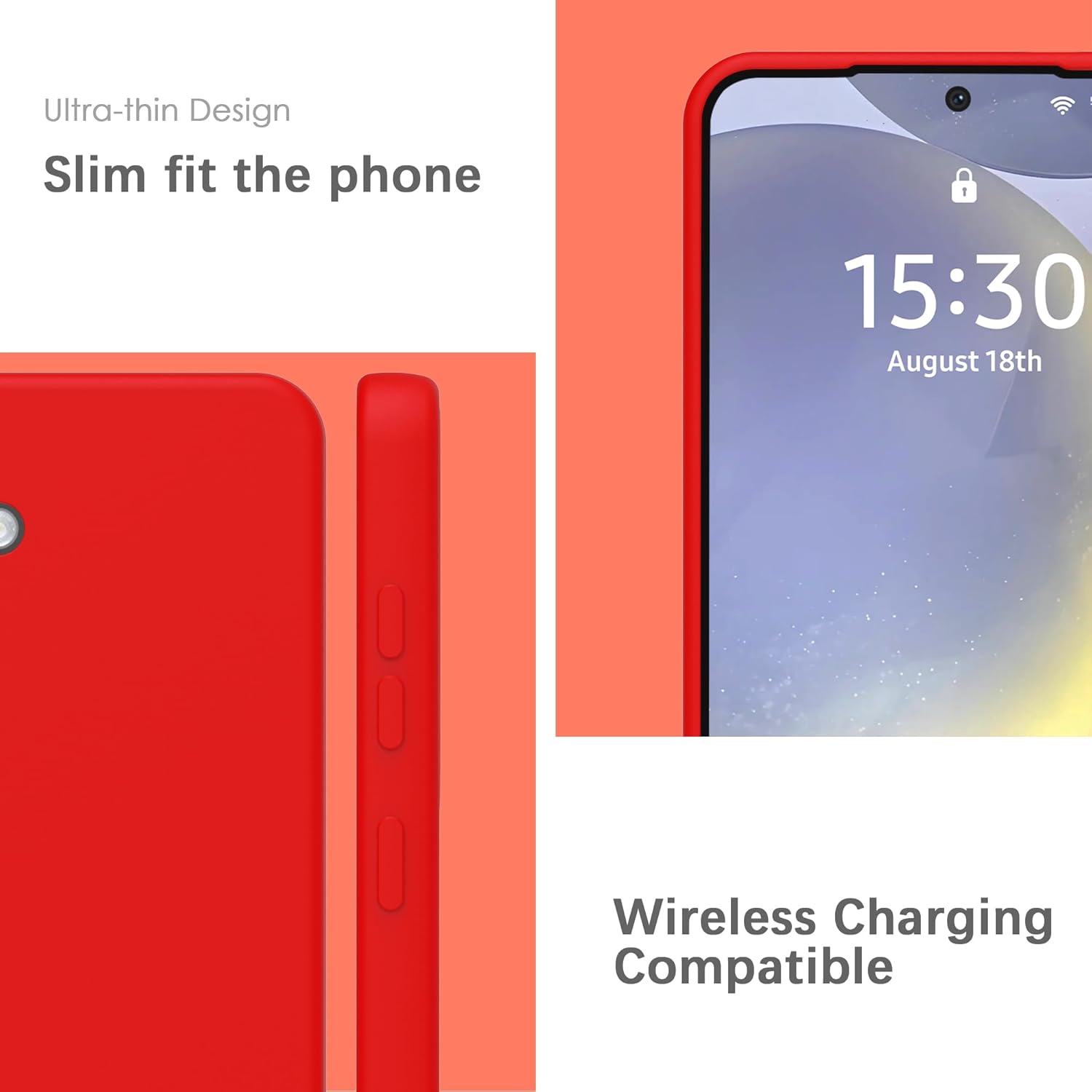 Силиконов калъф YATWIN за Samsung Galaxy S24 Plus, мек на допир, удароустойчив, прахоустойчив, защитен калъф за цялото тяло, червен