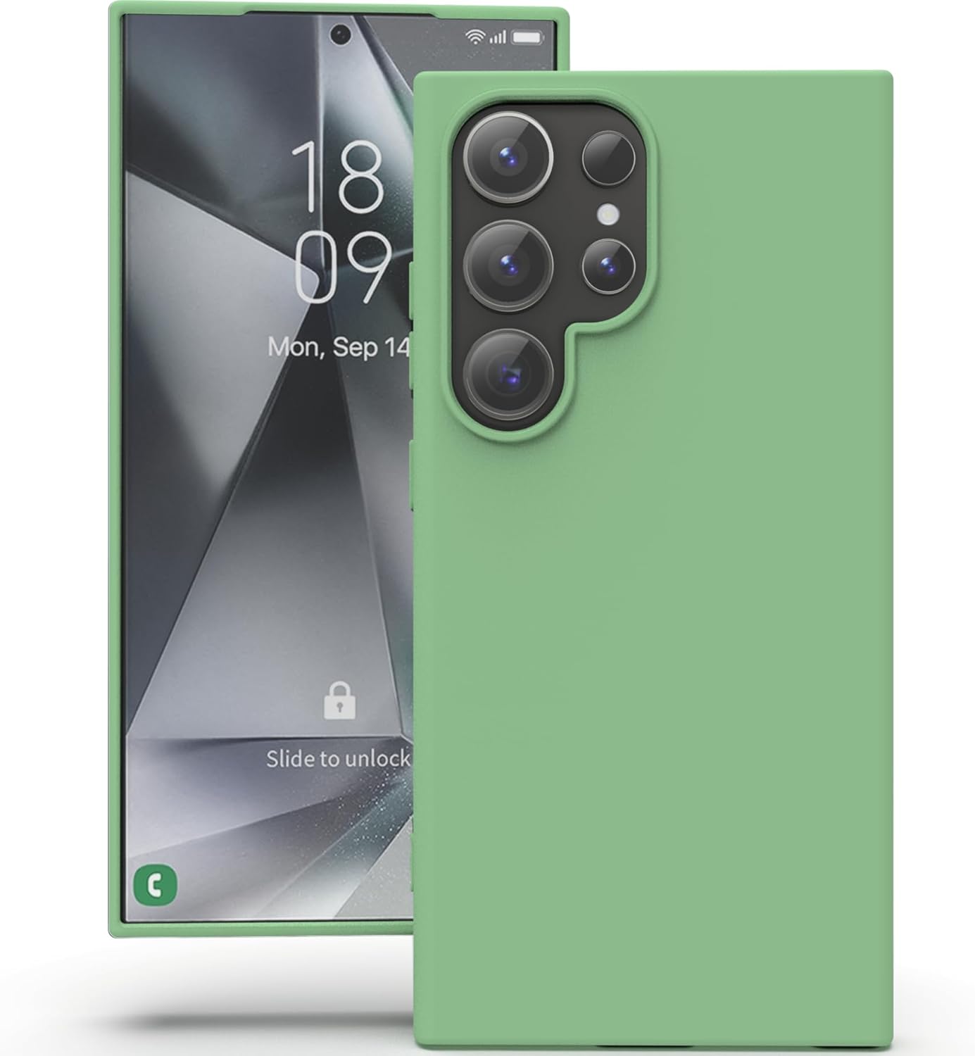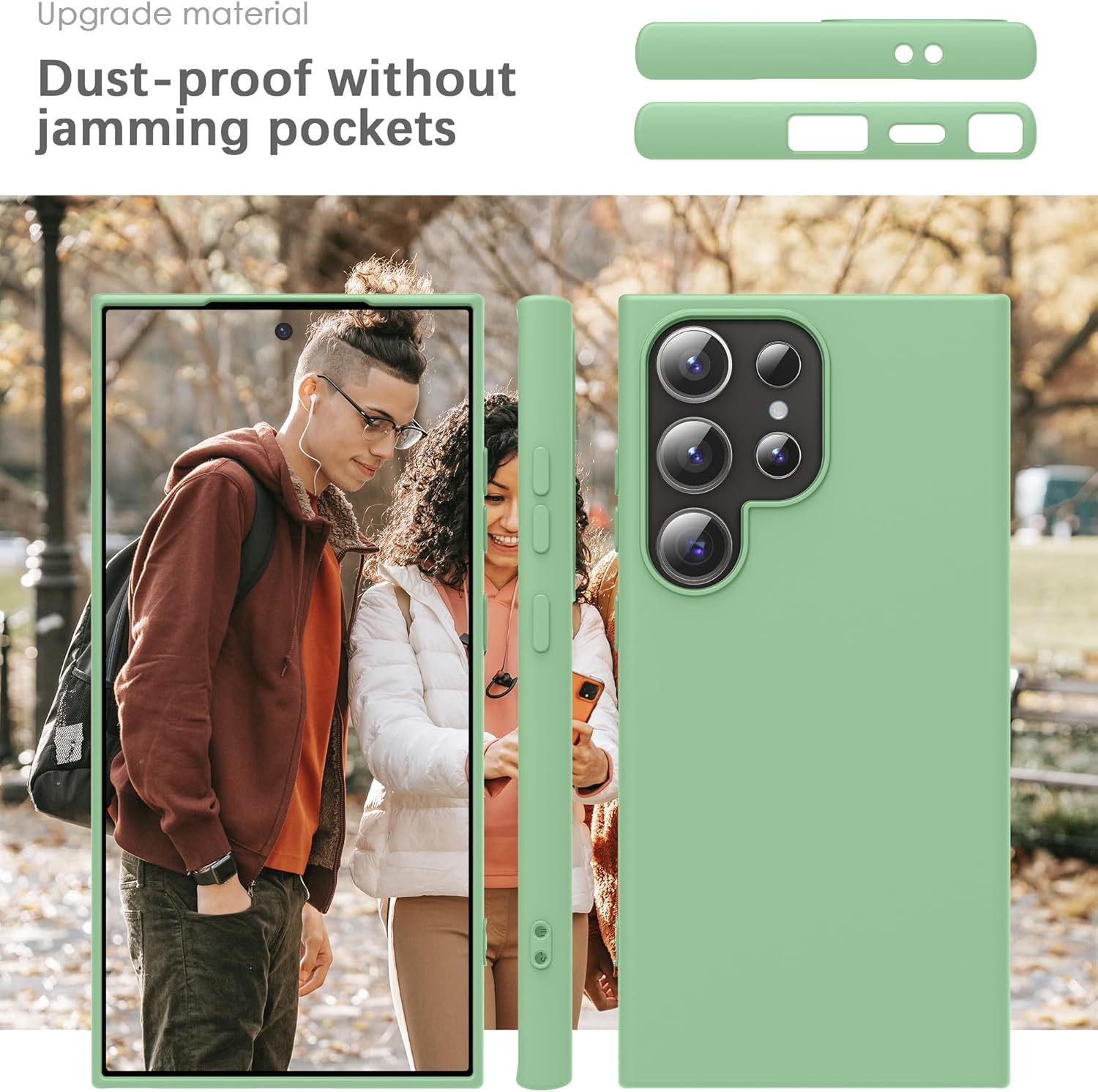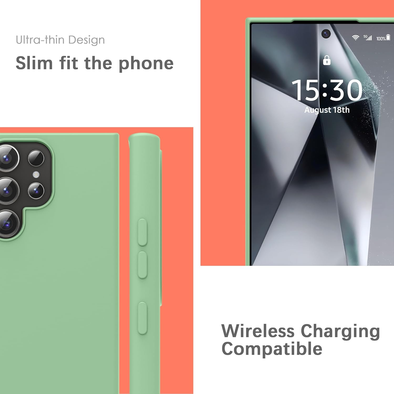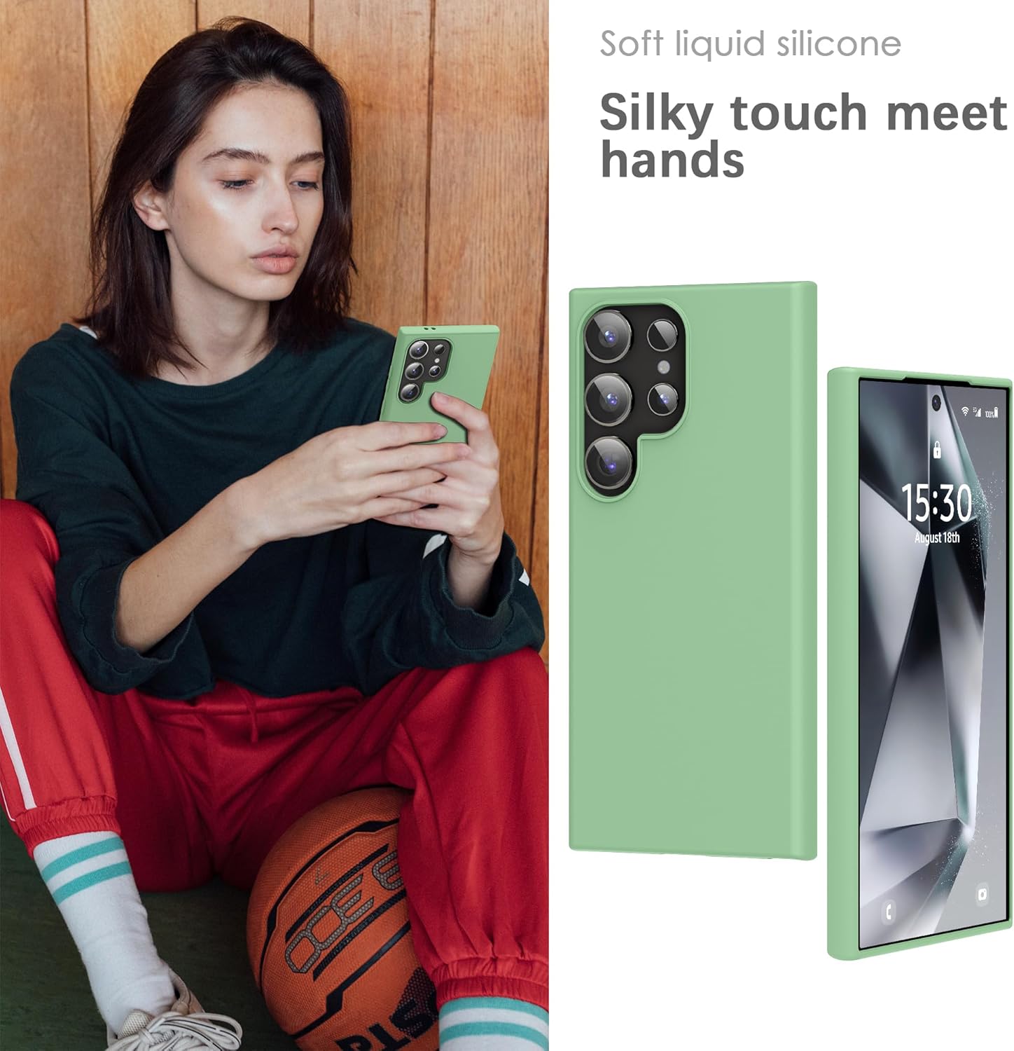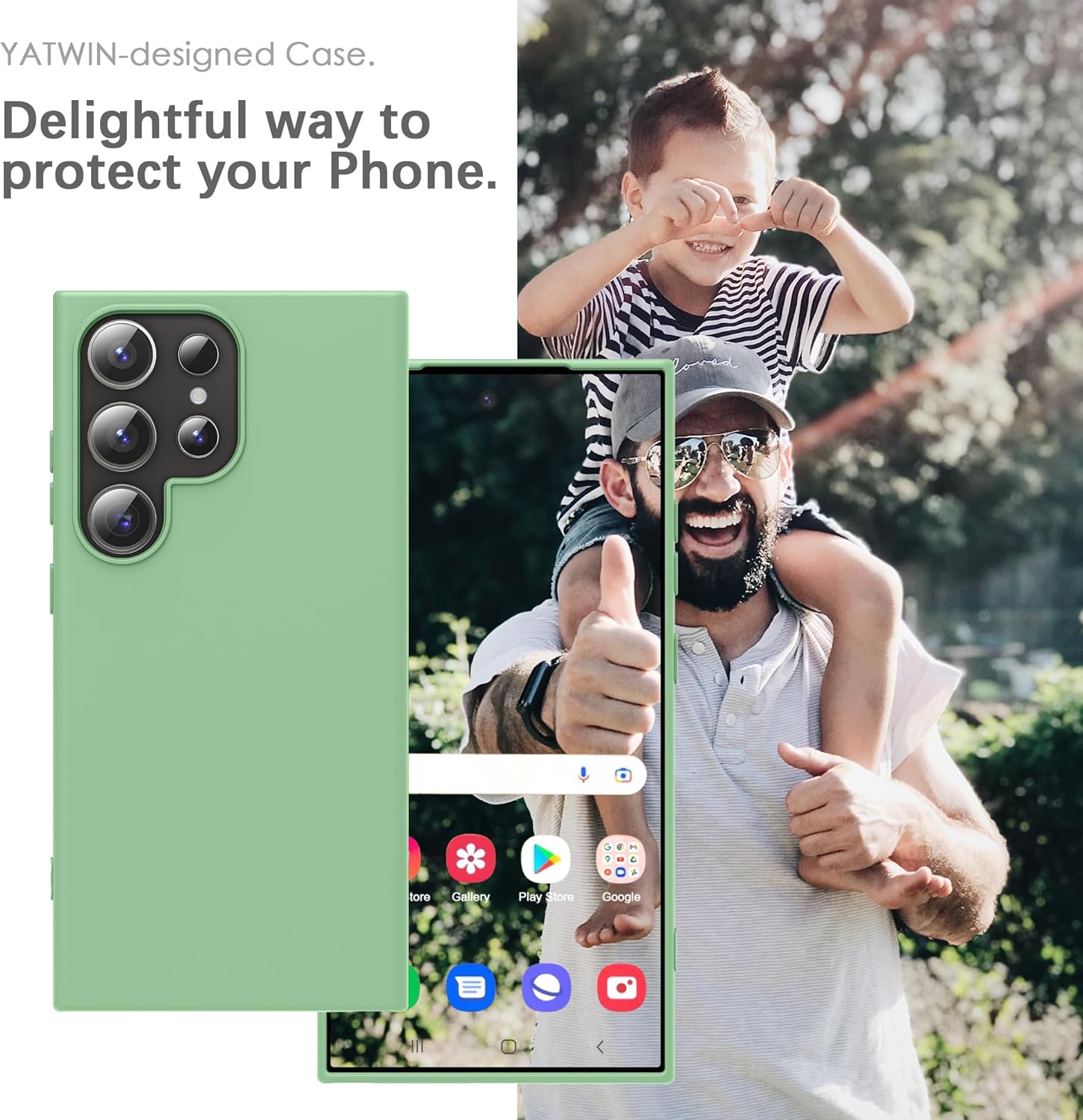 Силиконов калъф YATWIN за Samsung Galaxy S24 Ultra, мек на допир, удароустойчив, прахоустойчив, защитен калъф за цялото тяло, ментово зелен