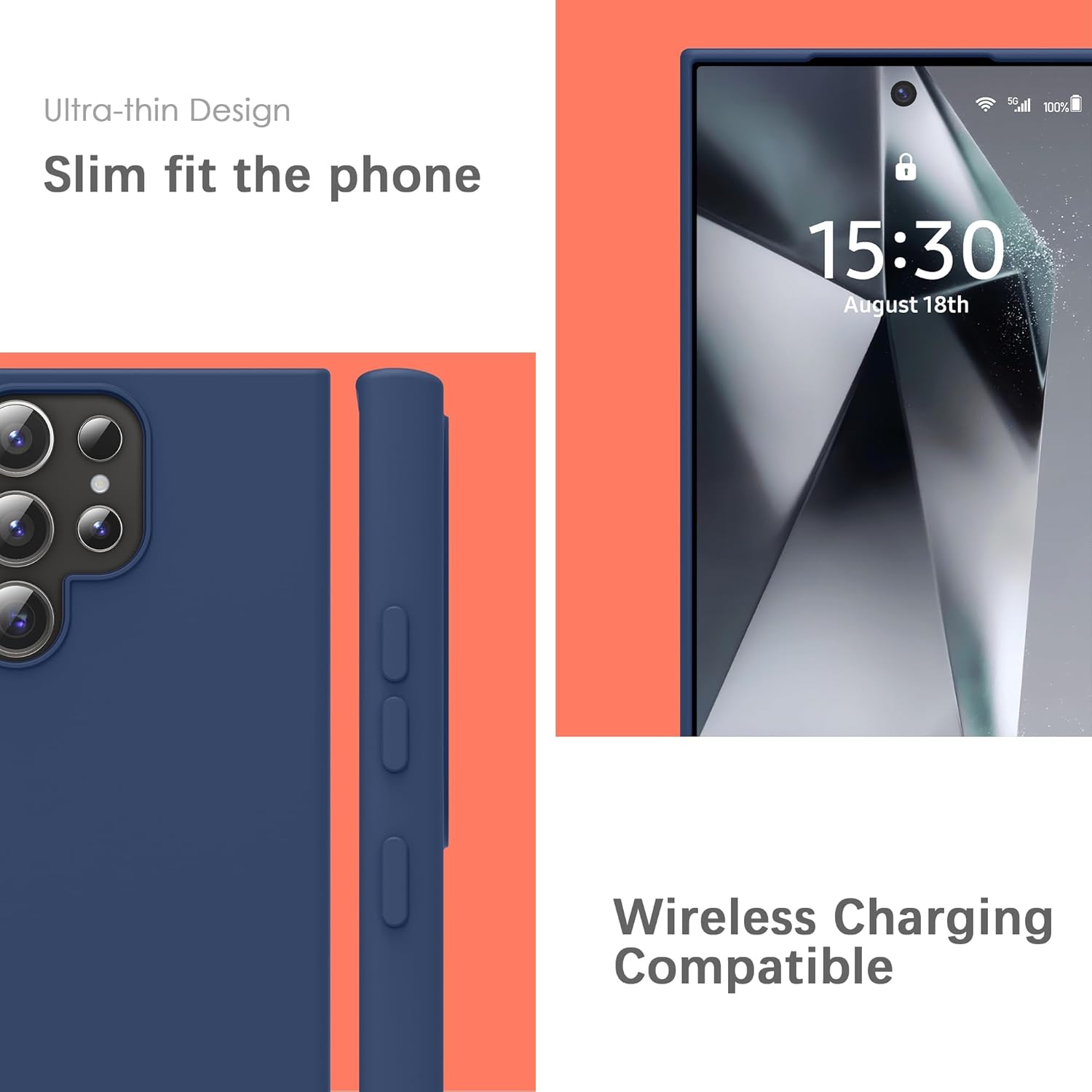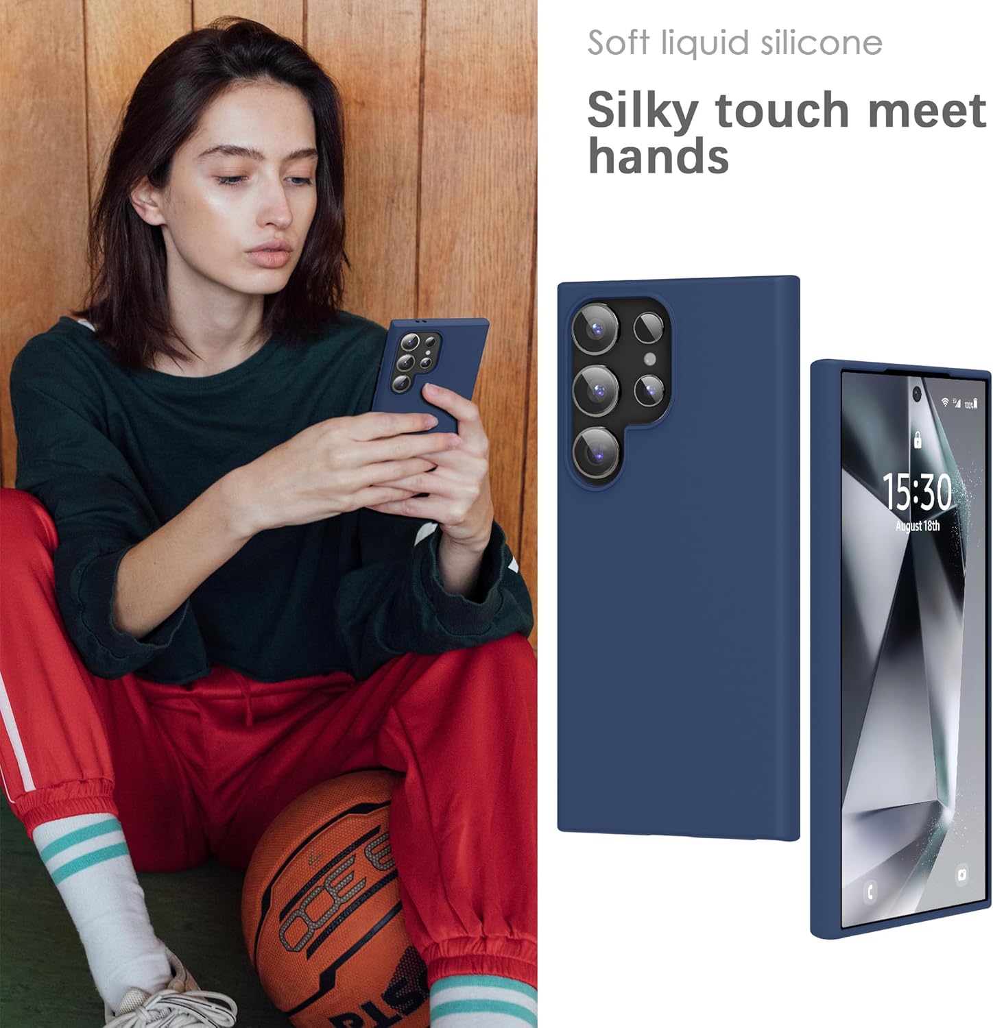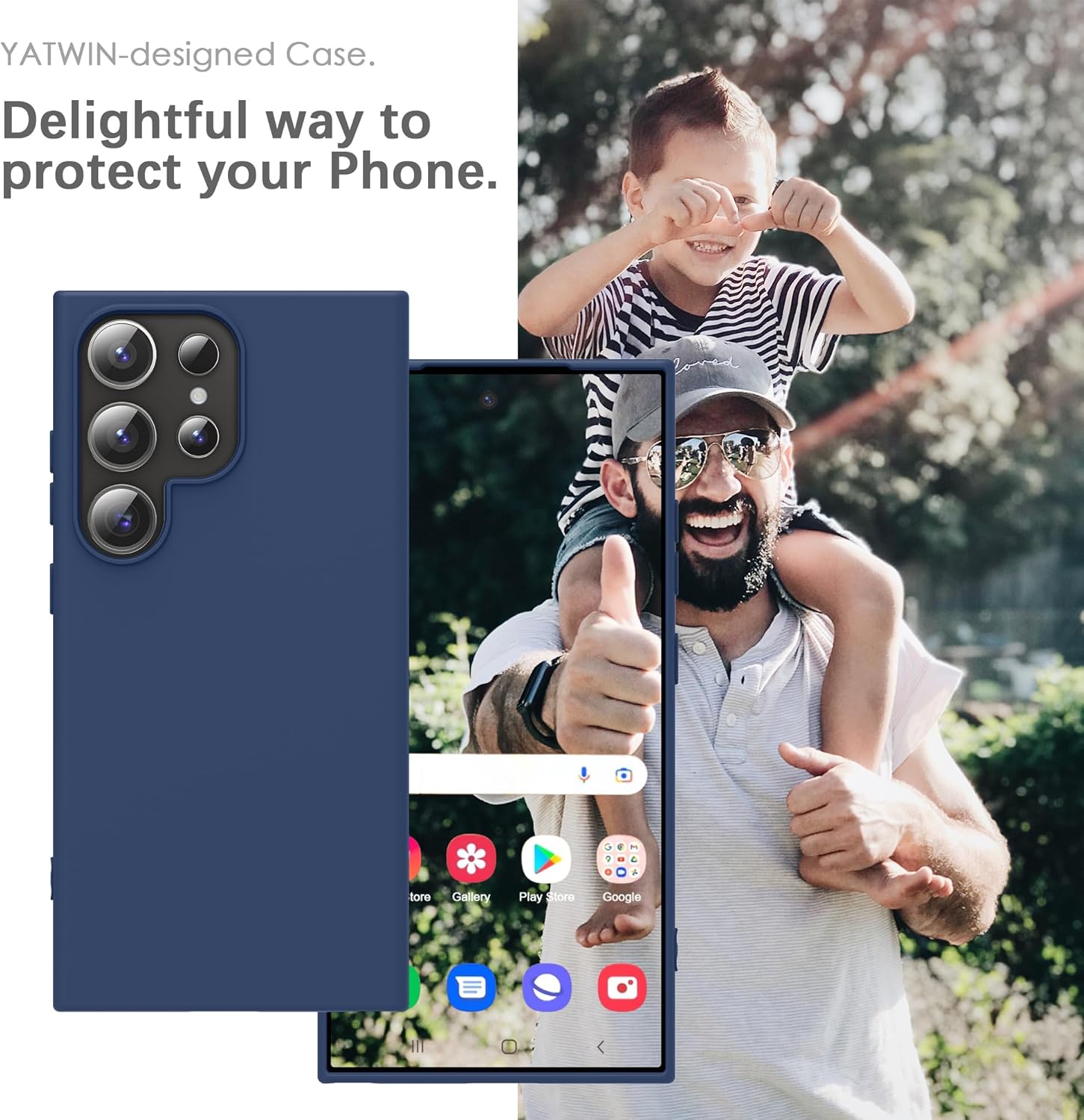 Силиконов калъф YATWIN за Samsung Galaxy S24 Ultra, мек на допир, удароустойчив, прахоустойчив, защитен калъф за цялото тяло, син