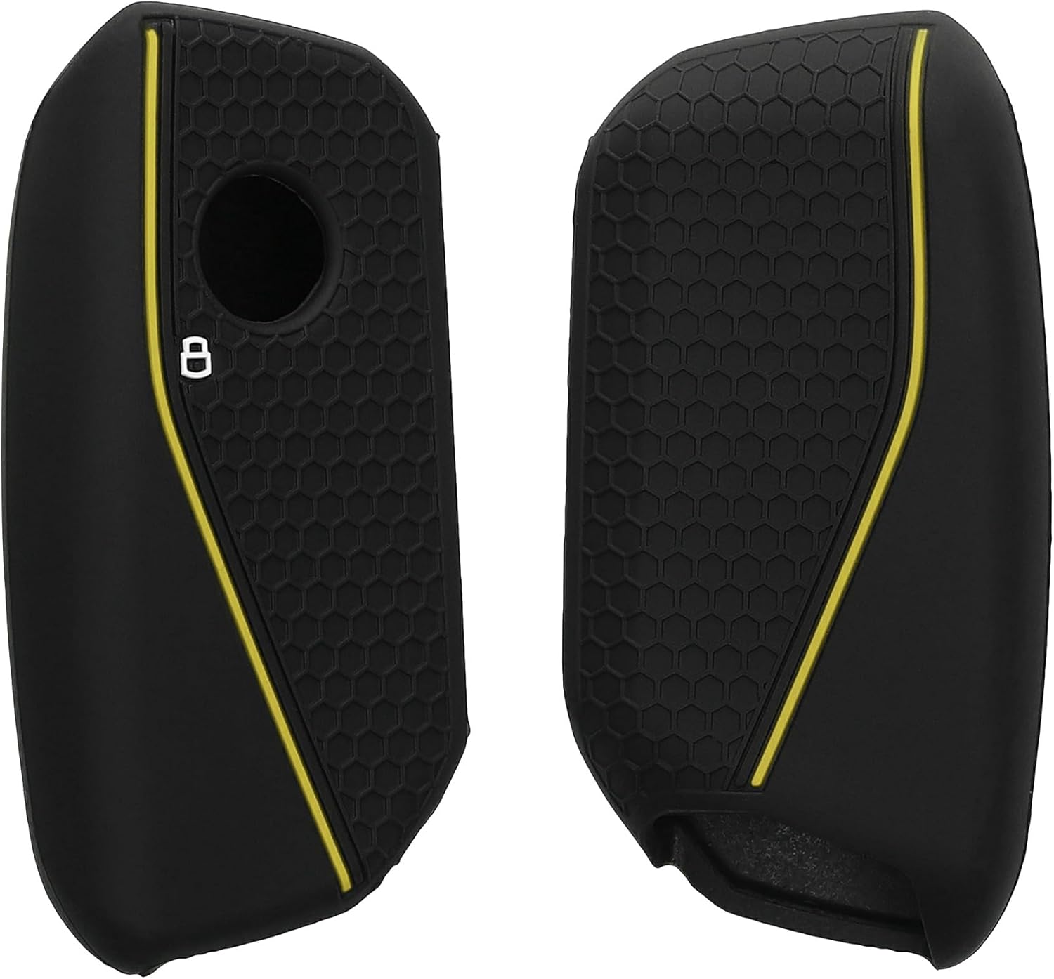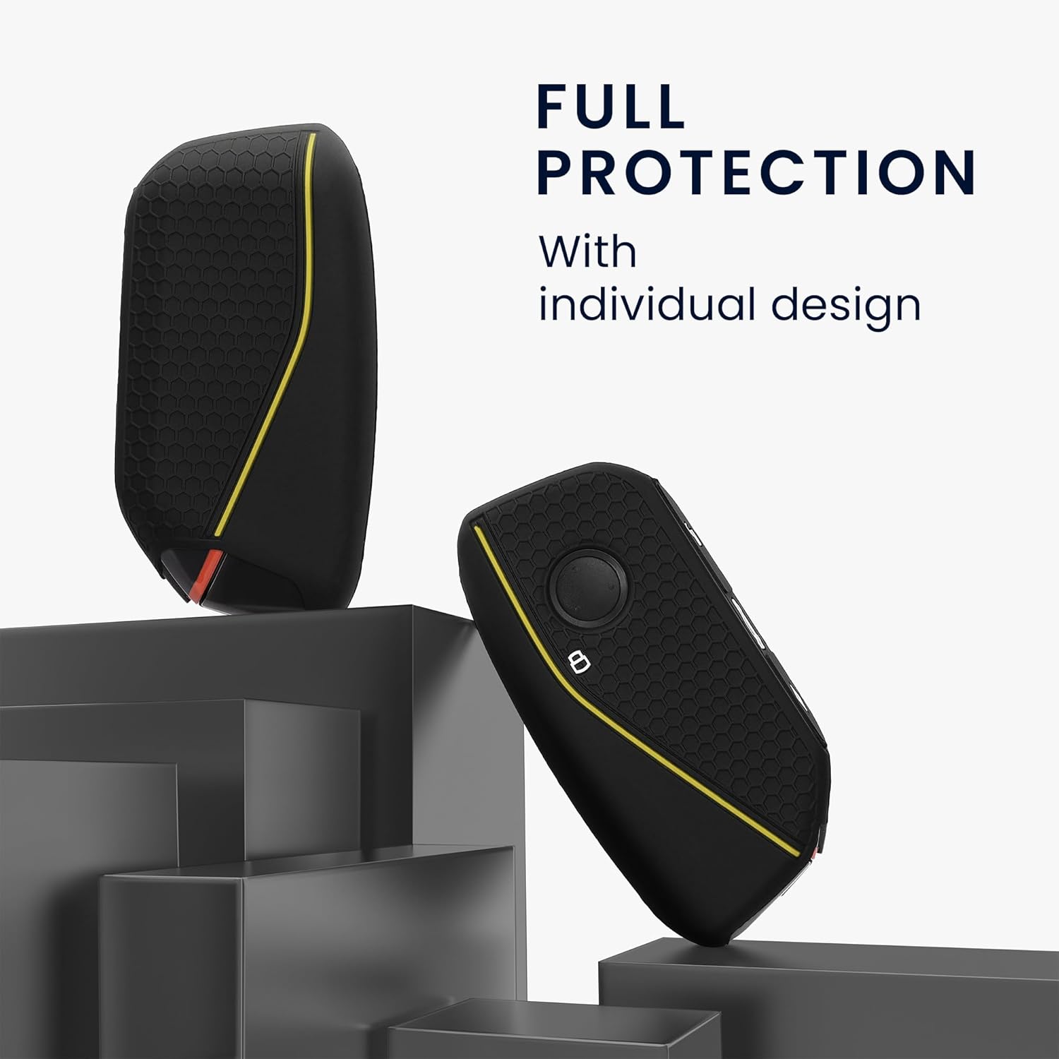 Силиконов калъф за ключ за кола kwmobile, съвместим с BMW 4-бутонния X7 X1 U11 iX ix1 7 Series G07 I7 - в черно и жълто