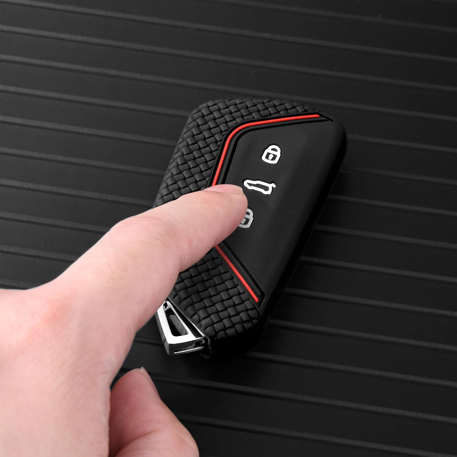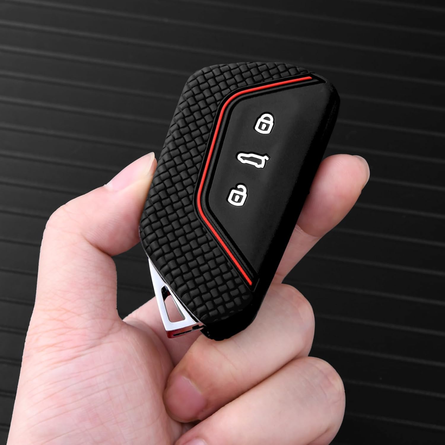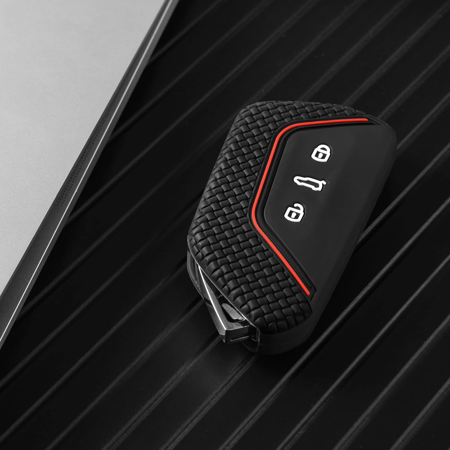 Силиконов калъф за ключ за кола OATSBASF за VW, съвместим с Golf 8, Seat Leon MK 4, VW ID.3, Tarraco, Ateca, Skoda Octavia Cupra, защитен калъф за ключ (червена линия)