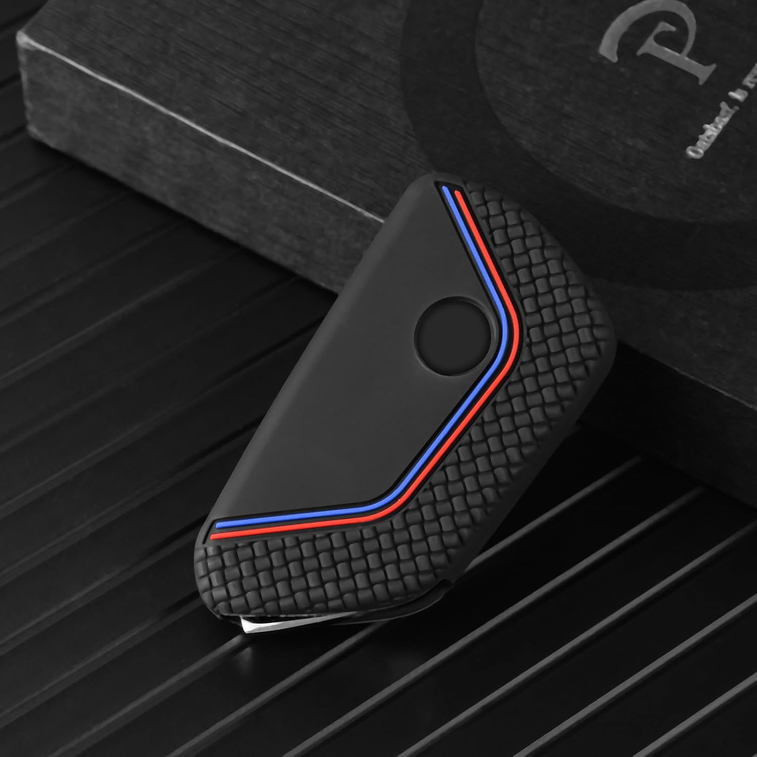 Силиконов калъф за ключ за кола OATSBASF за VW, съвместим с Golf 8, Seat Leon MK 4, VW ID.3, Tarraco, Ateca, Skoda Octavia Cupra, защитен калъф за ключ (червено-син)