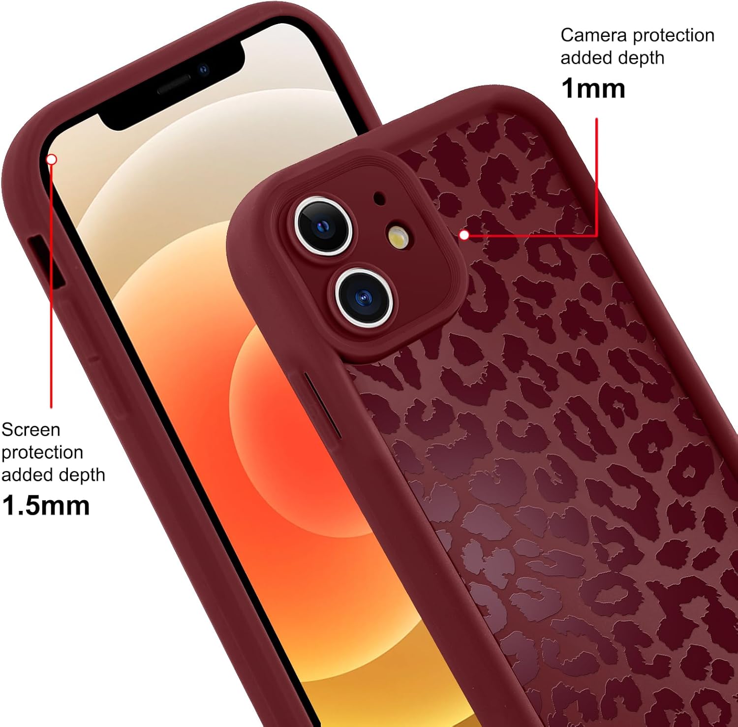 Силиконов калъф ZhuoFan за iPhone 12 Mini 5.4 инча, естетичен леопардов модел, червен, матов дизайн, защитен калъф, ултра мек, за момичета и жени, удароустойчив, защита на камерата, броня, 06