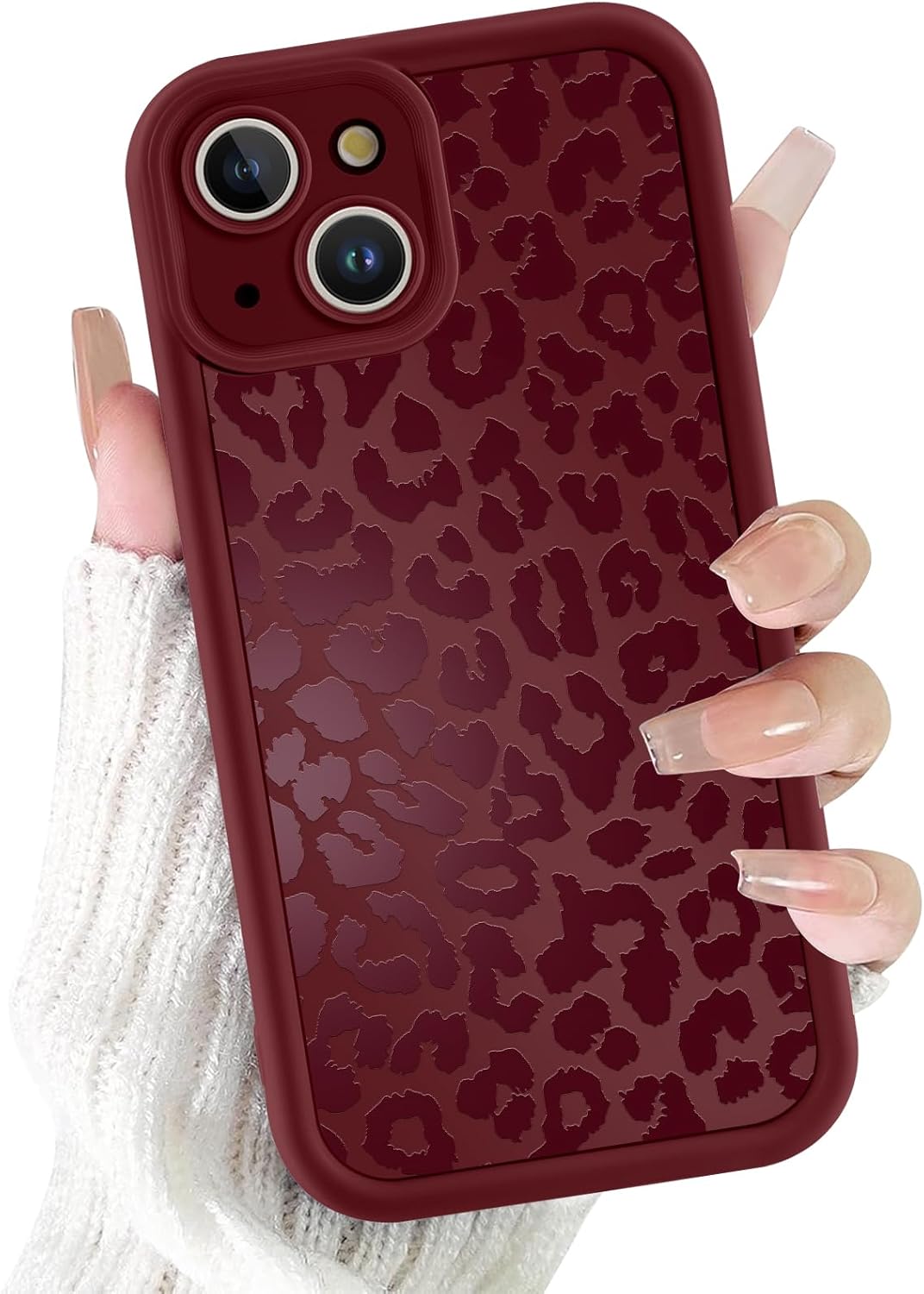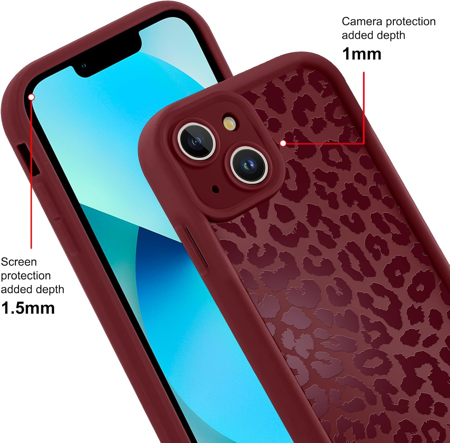 Силиконов калъф ZhuoFan за iPhone 13 Mini 5.4 инча, естетичен леопардов модел, червен, матов дизайн, защитен калъф, ултра мек, за момичета и жени, удароустойчив, за защита на камерата, броня, 06