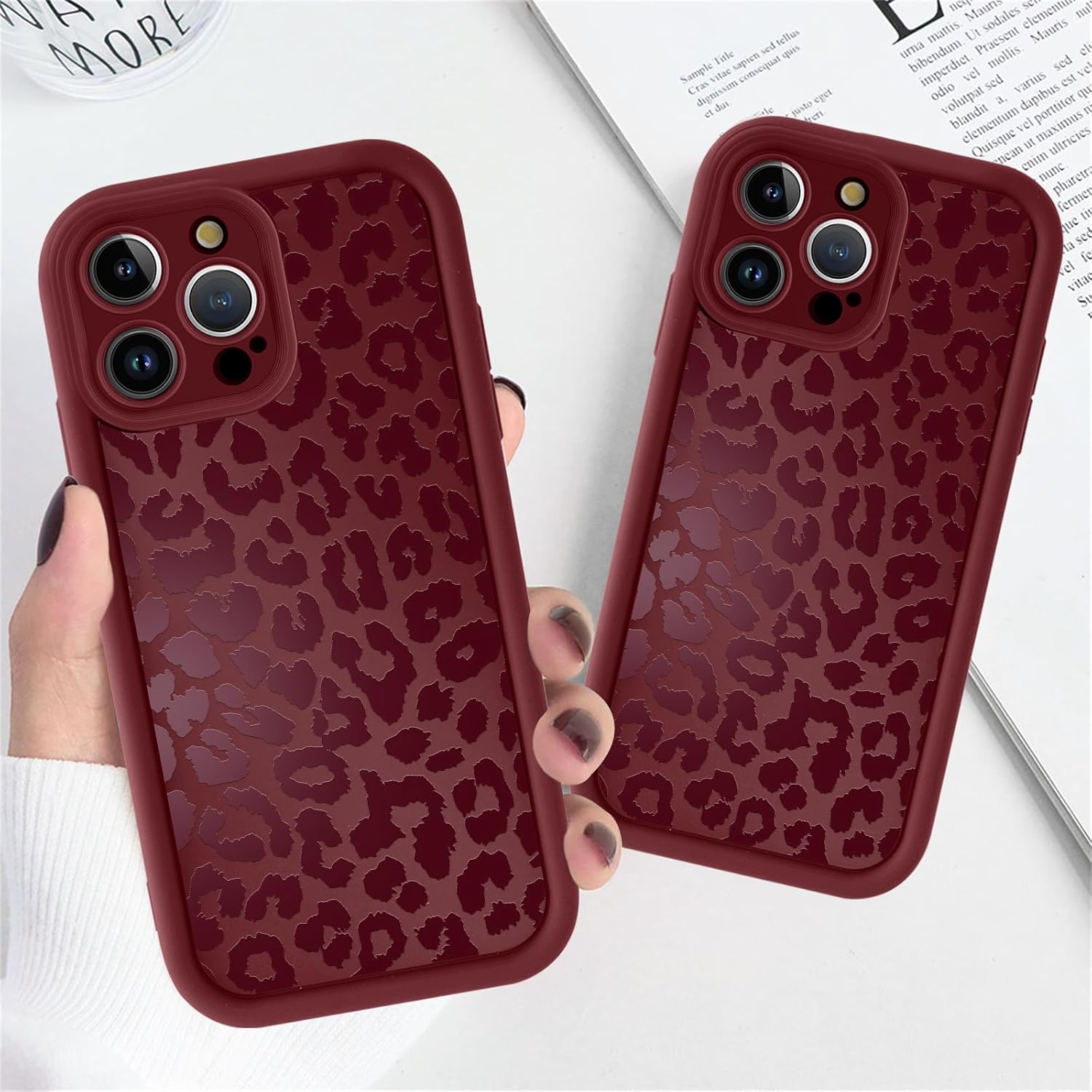 Силиконов калъф ZhuoFan за iPhone 13 Pro Max 6.7 инча, естетичен леопардов модел, червен, матов дизайн, защитен калъф, ултра мек, за момичета и жени, удароустойчив, защита на камерата
