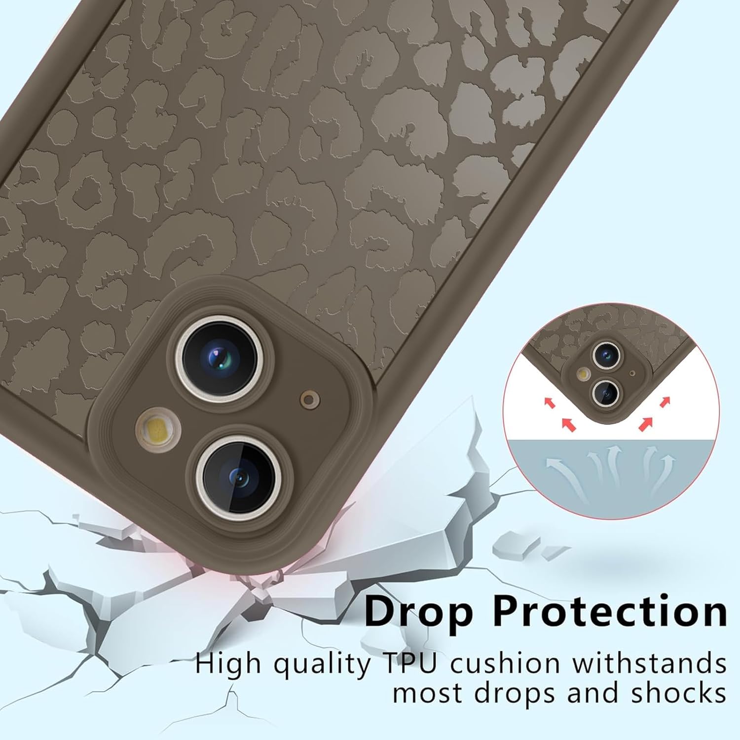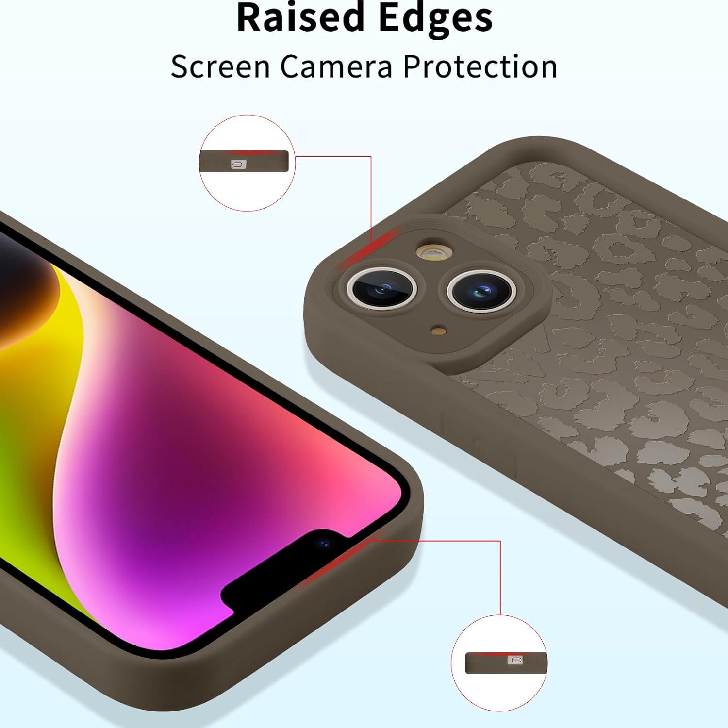 Силиконов калъф ZhuoFan за iPhone 14 Plus 6.7 инча, естетичен леопардов модел, кафяв, матов, летен дизайн, защитен калъф, ултра мек, за момичета и жени, удароустойчив, защита на камерата