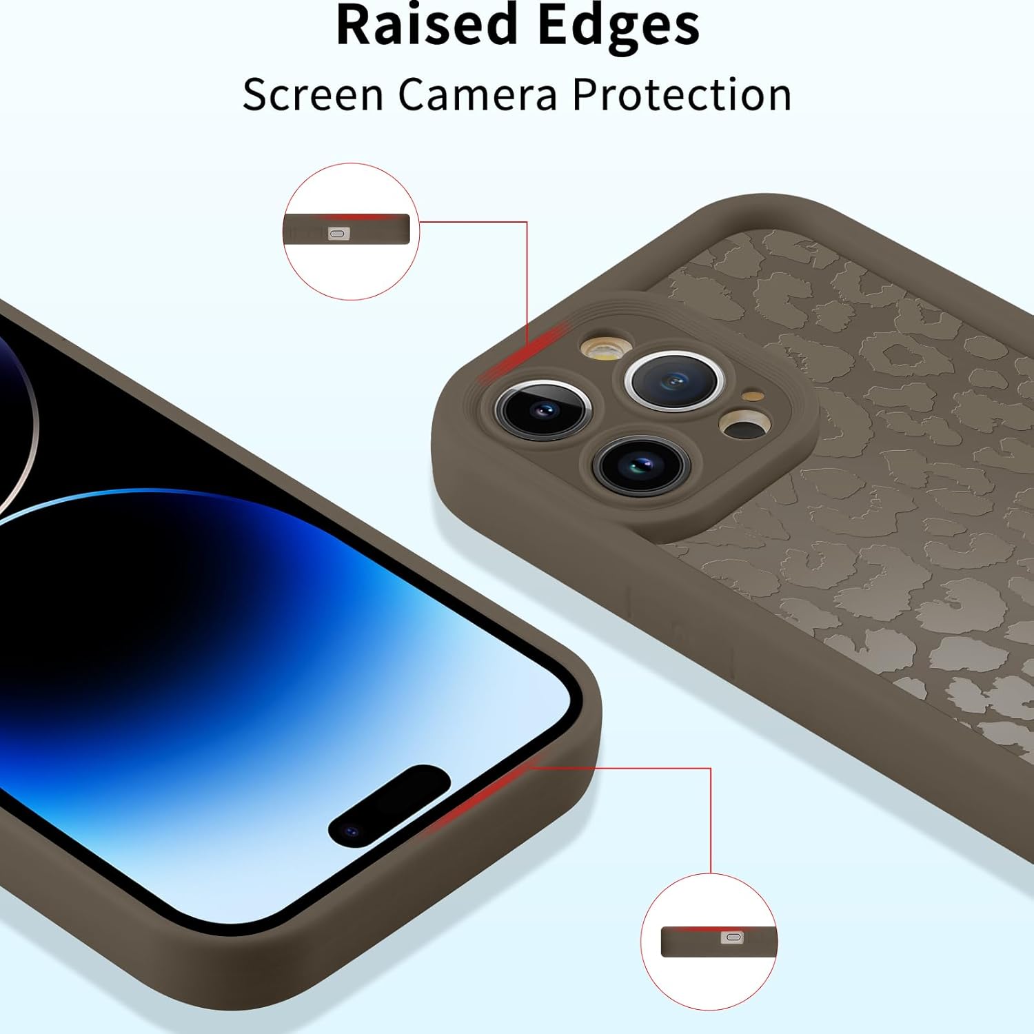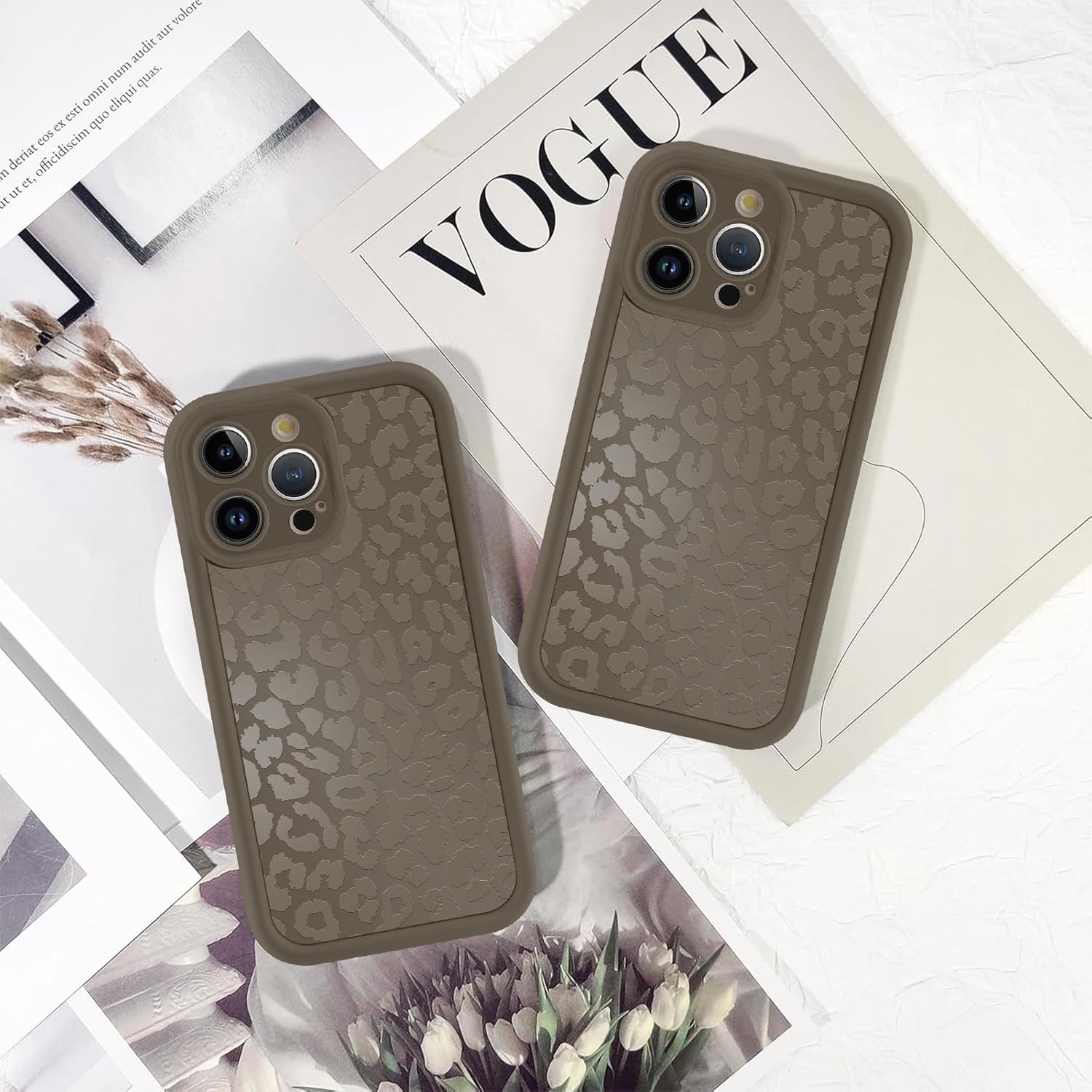 Силиконов калъф ZhuoFan за iPhone 14 Pro 6.1 инча, естетичен леопардов модел, кафяв, матов, летен дизайн, защитен калъф, ултра мек, за момичета и жени, удароустойчив, защита на камерата