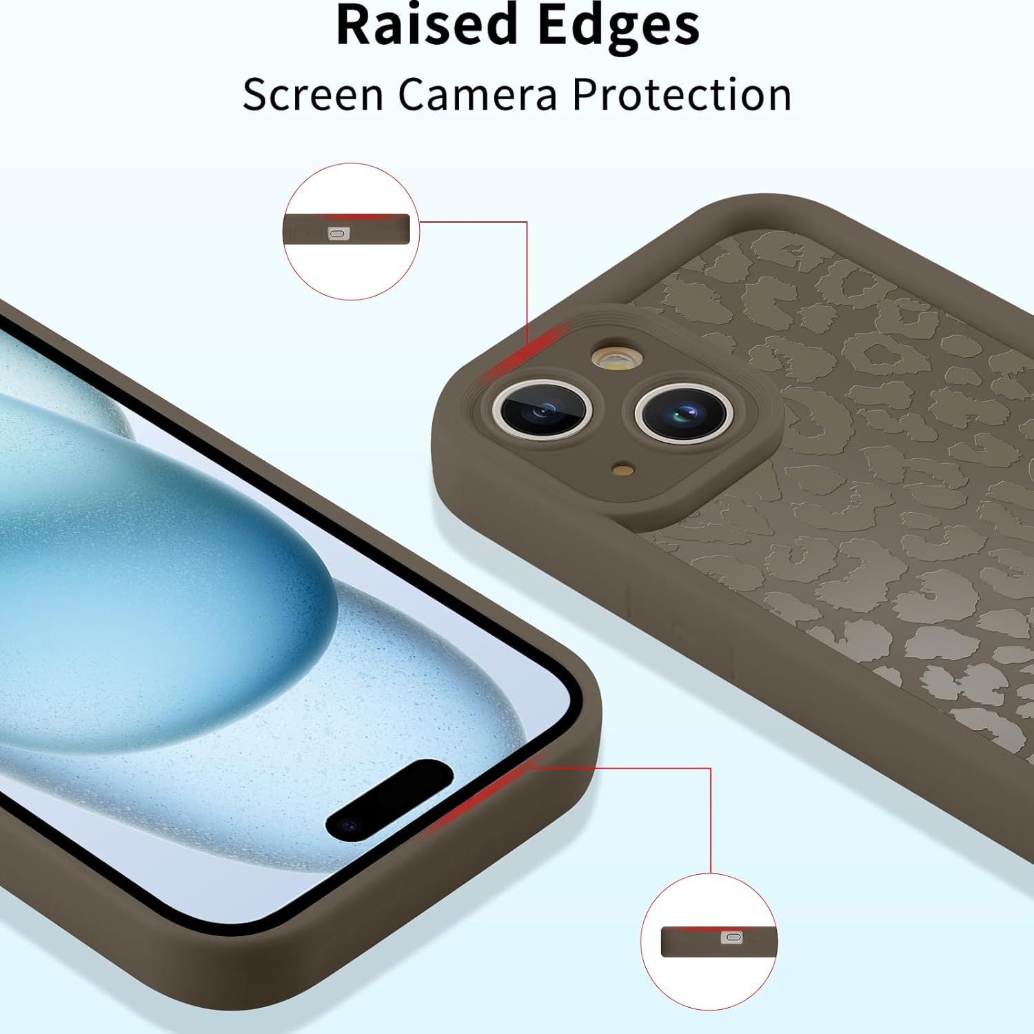 Силиконов калъф ZhuoFan за iPhone 15 6.1 инча, естетичен леопардов модел, кафяв, матов, летен дизайн, защитен калъф, ултра мек, за момичета и жени, удароустойчив, защита на камерата, броня