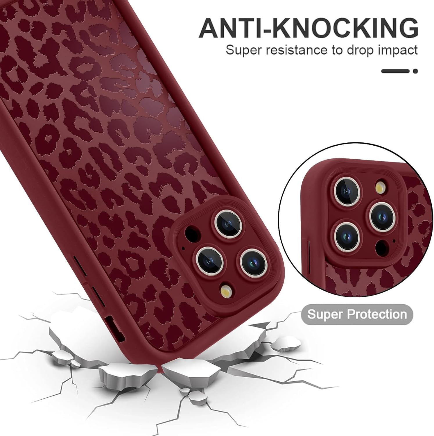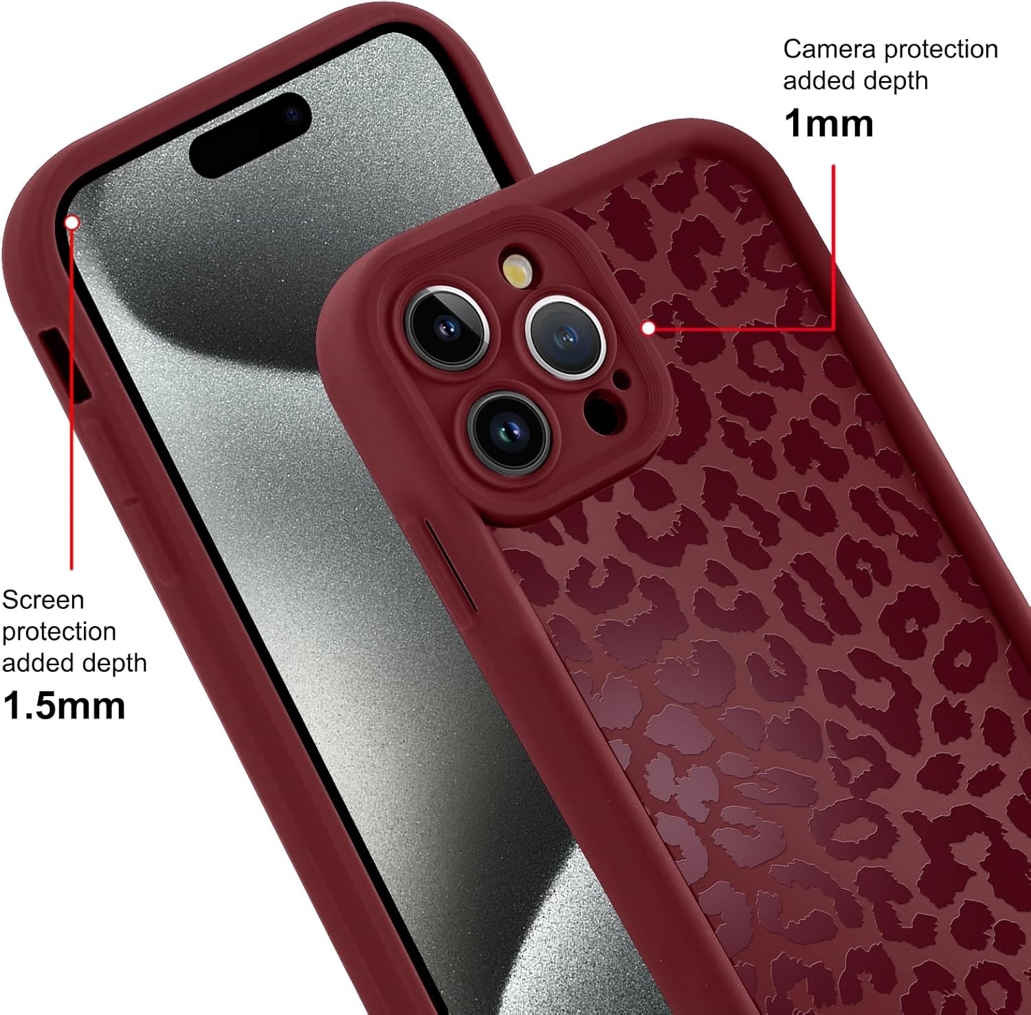 Силиконов калъф ZhuoFan за iPhone 15 Pro 6.1 инча, естетичен леопардов модел, червен, матов дизайн, защитен калъф, ултра мек, за момичета и жени, удароустойчив, защита на камерата, броня, 06