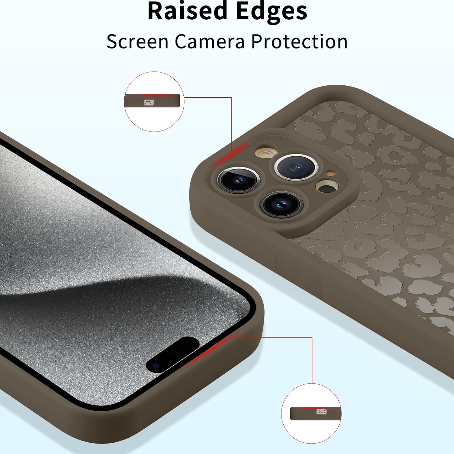 Силиконов калъф ZhuoFan за iPhone 15 Pro 6.1 инча, естетичен леопардов модел, кафяв, матов, летен дизайн, защитен калъф, ултра мек, за момичета и жени, удароустойчив, защита на камерата