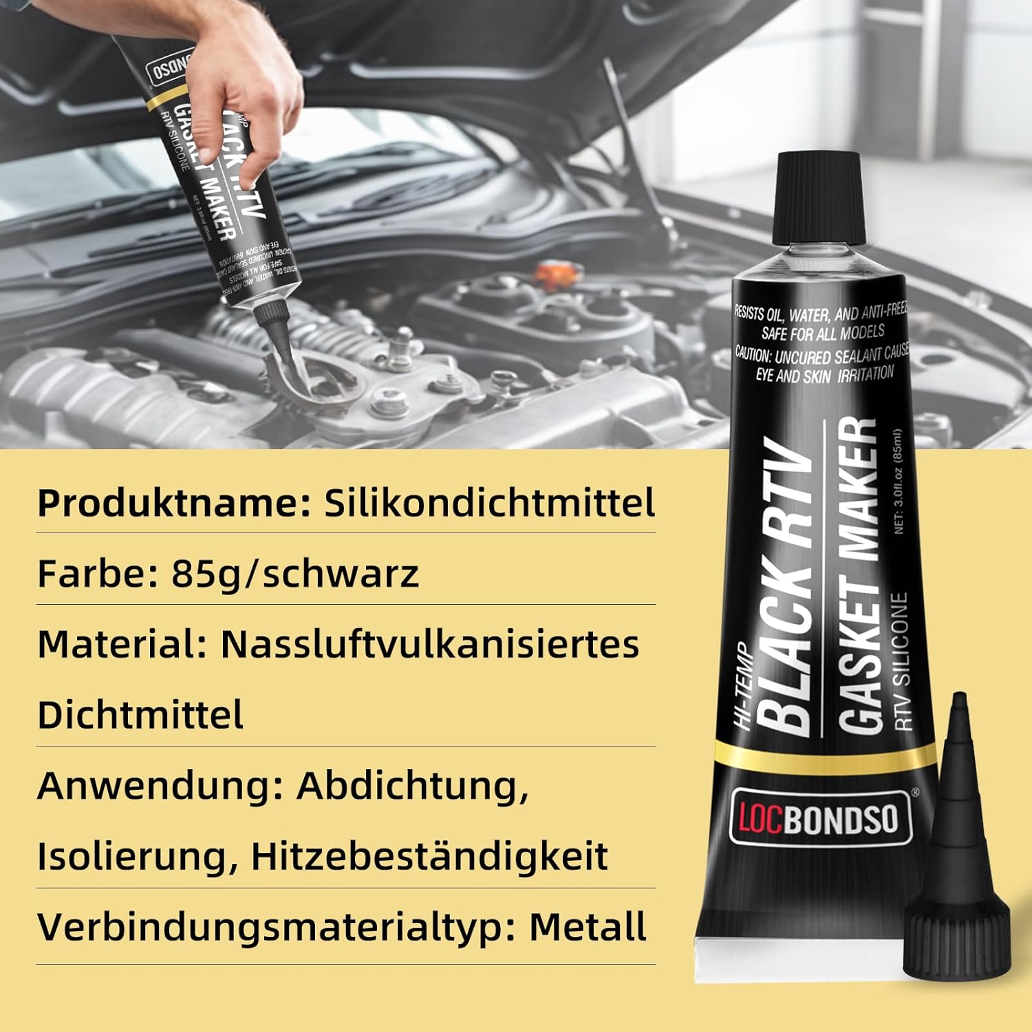 Силиконов уплътнител LOCBONDSO за двигател с висока температура - устойчив на бензин, устойчив на замръзване, термоустойчив уплътнител за картер и капак на клапани (RTV, 85 г)