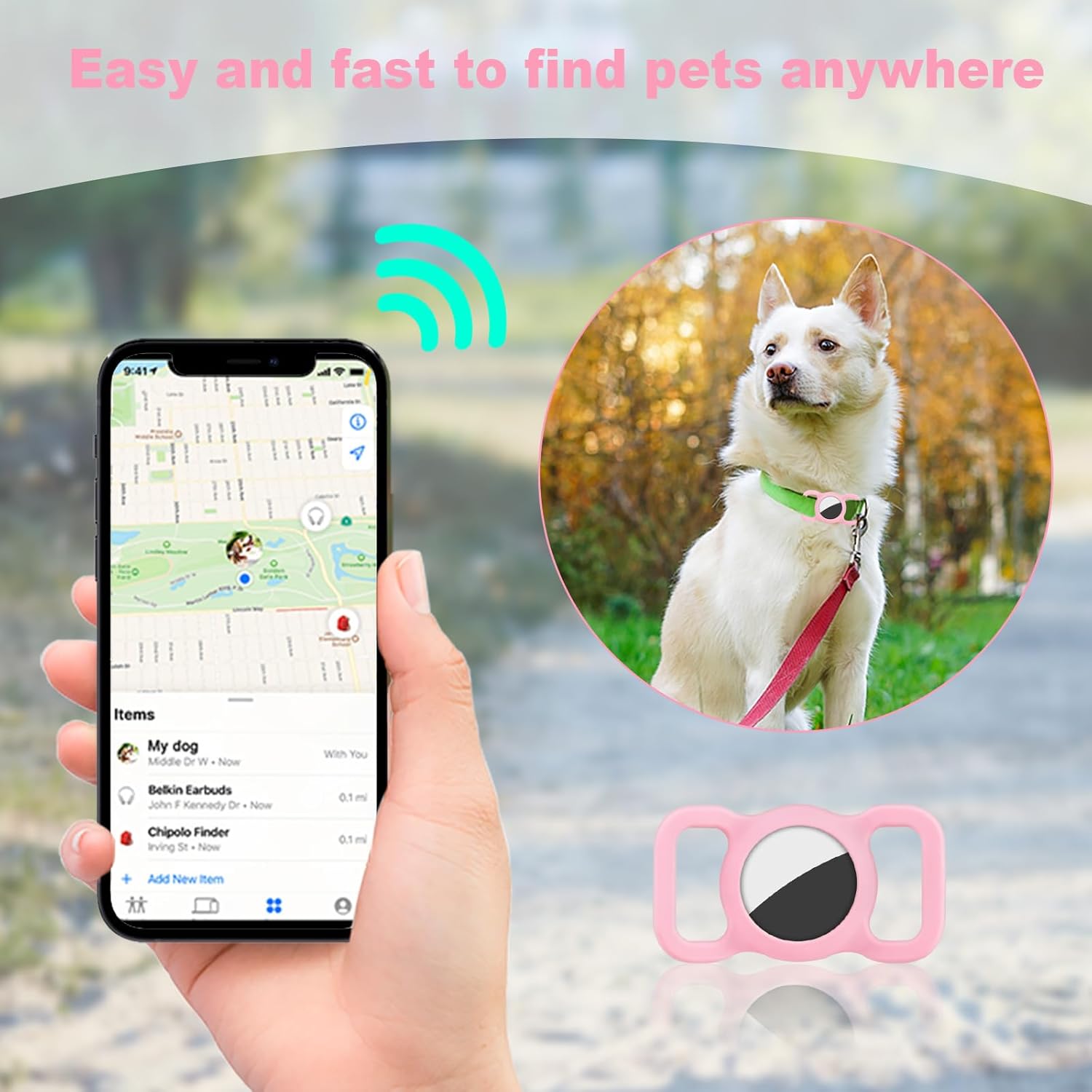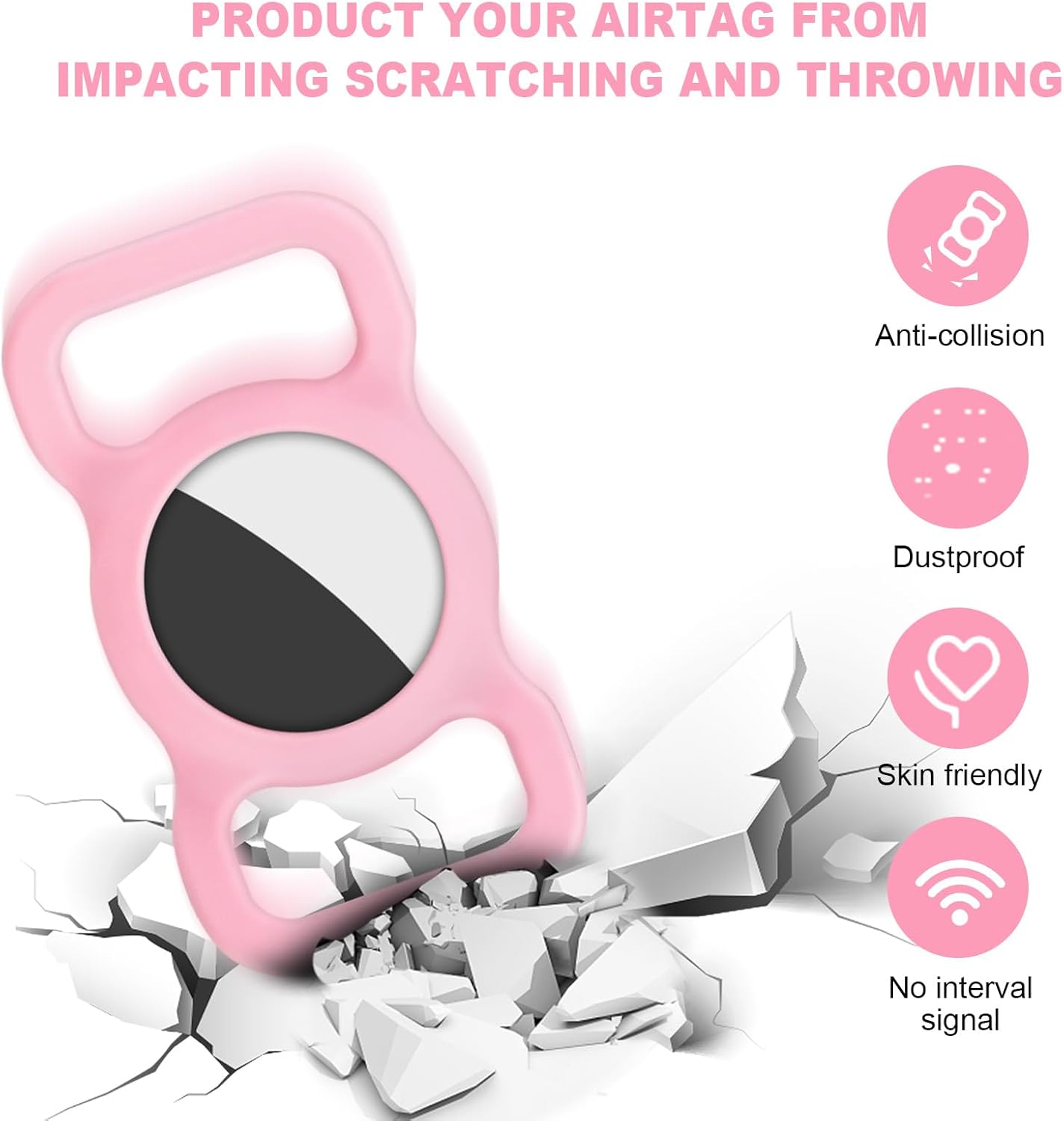 Силиконов защитен калъф Ainiv, Силиконов защитен калъф за AirTag, Съвместим с Apple Airtag Finder нашийник за кучета, Държач за домашни любимци AirTags, Аксесоари за домашни любимци за проследяване на кучета и котки (Розов)