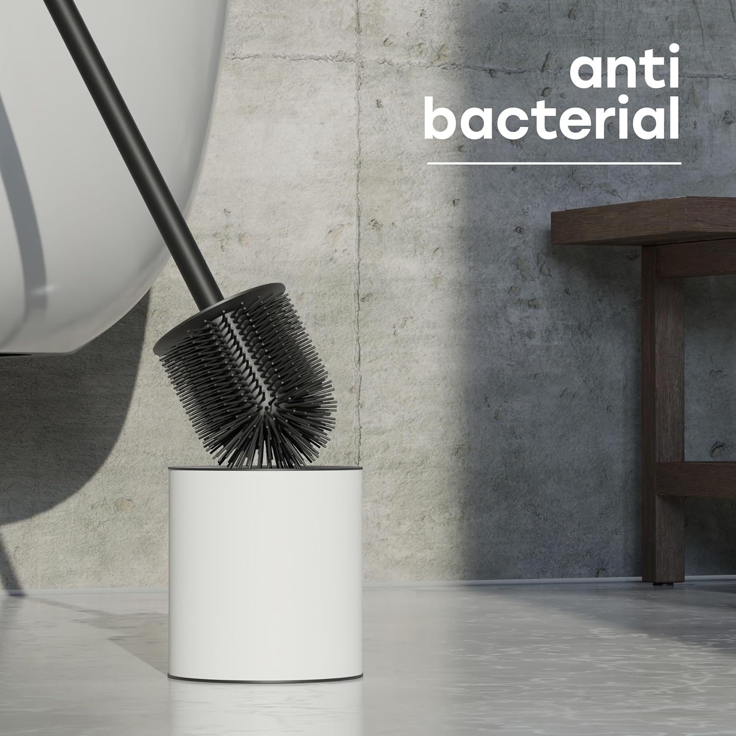 Силиконова четка за тоалетна от неръждаема стомана - Антибактериална четка за тоалетна със стилен държач за четка за тоалетна - Дизайнерска силиконова четка за тоалетна с предпазител от пръски - Четка за тоалетна (бяла)