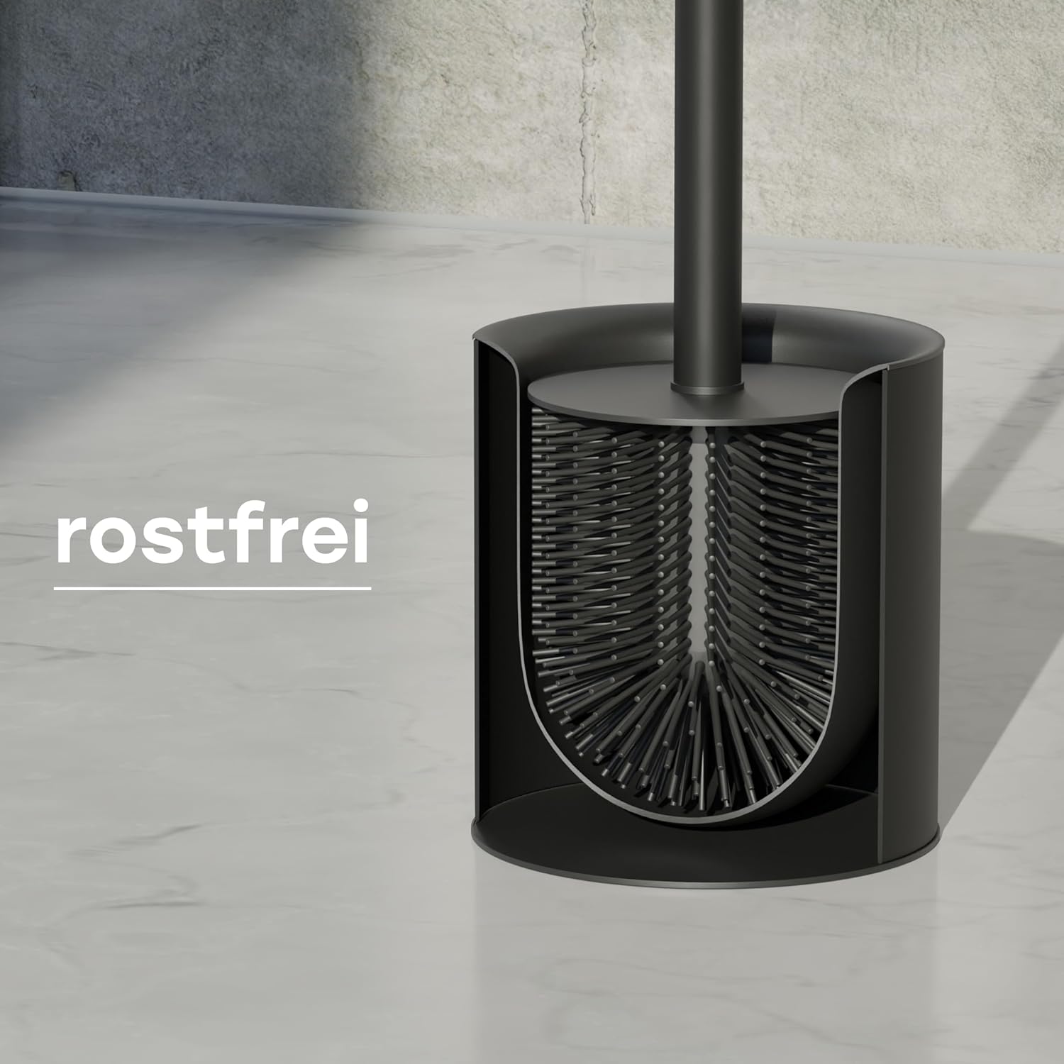 Силиконова тоалетна четка от неръждаема стомана - Антибактериална тоалетна четка със стилен държач за тоалетна четка - Дизайнерска тоалетна четка от силикон с предпазител от пръски - Тоалетна четка (черна)