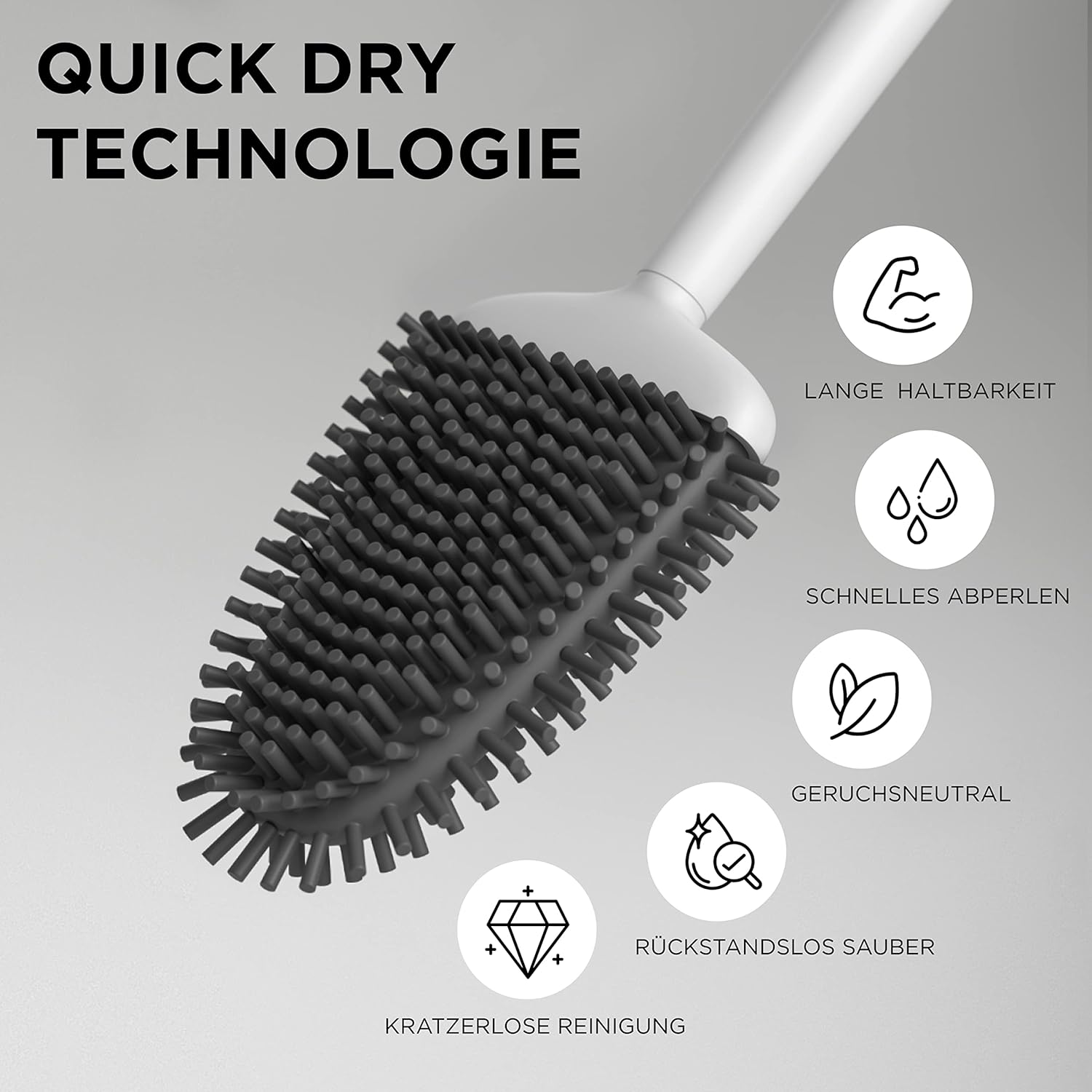 • Антибактериална глава на четката - Благодарение на повърхностната текстура на нашата силиконова четка за тоалетна, главата на четката остава зона без бактерии. Гарантирано е, че няма остатъци.