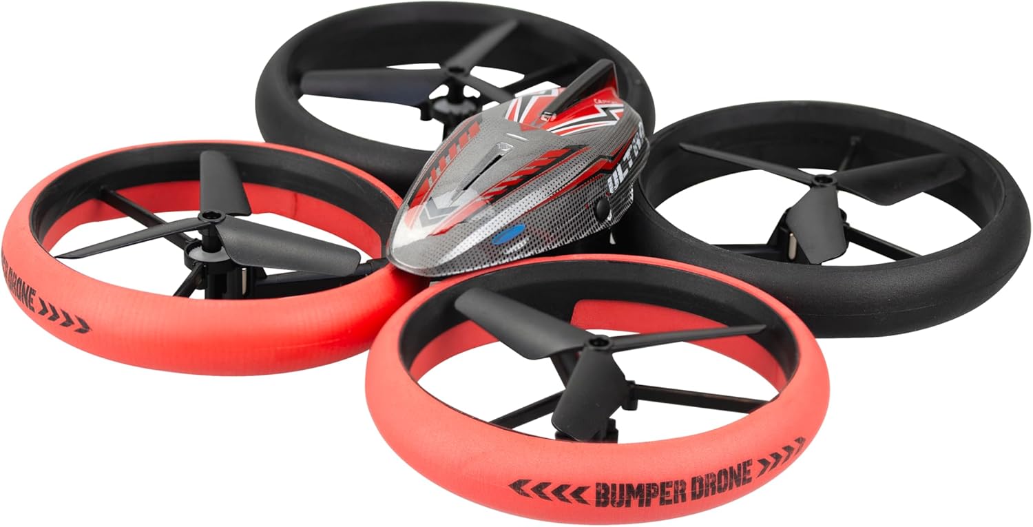 „Bumper Drone Lit е вашият най-добър спътник за вълнуващи въздушни акробатики. Оборудван с 4 канала, този дрон ви предоставя впечатляващи 360° каскади, които добавят допълнителна доза вълнение към всеки полет. Той е проектиран да издържа на всякакви удари и е оборудван със защитни пръстени, които гарантират неговата издръжливост дори в случай на сблъсъци. Този дрон предлага персонализирано полетно изживяване с трите си скорости на полет, които ви позволяват да регулирате скоростта според вашето ниво на опит. Той също така има режим на задържане и функция за автоматично излитане/кацане, което го прави лесен за управление дори за начинаещи. Оборудван с LED фарове, Bumper Drone Lit предлага подобрена видимост, така че можете да летите безопасно през деня и през нощта. Независимо дали сте начинаещ или опитен пилот, този дрон ви предлага поглъщащо и забавно летателно изживяване. Независимо дали искате да преодолеете гравитацията с въздушни каскади или просто искате да изследвате околностите от въздуха, BUMPER DRONE LIT е готов да ви придружи във всички ваши приключения и да разшири границите на летенето с този универсален и здрав дрон.“