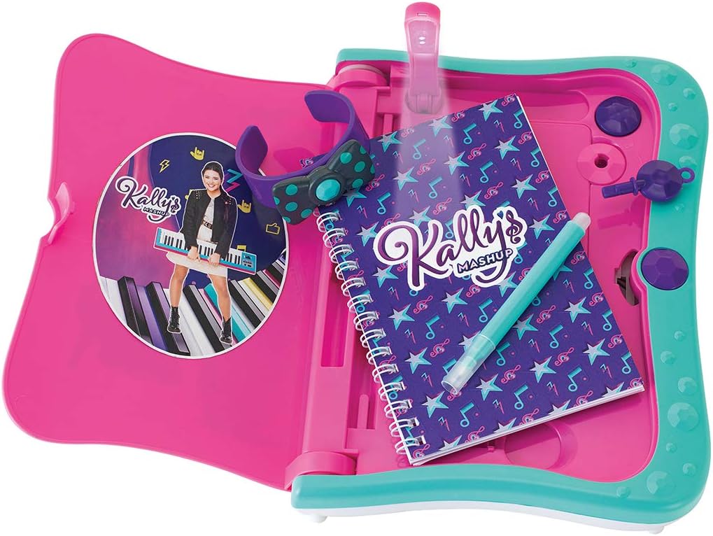 Официално лицензираният електронен таен дневник от Kally's Mashup. Всичко в този дневник ви пази в тайна: – Таен отвор, достъпен през включената гривна, – химикалка с невидимо мастило, така че бележките да не се виждат с просто око, – UV лампа за четене на написаното, – тайно скривалище, което е идеалният съюзник за записване и пазене на всички ваши тайни. За деца над 5 години.