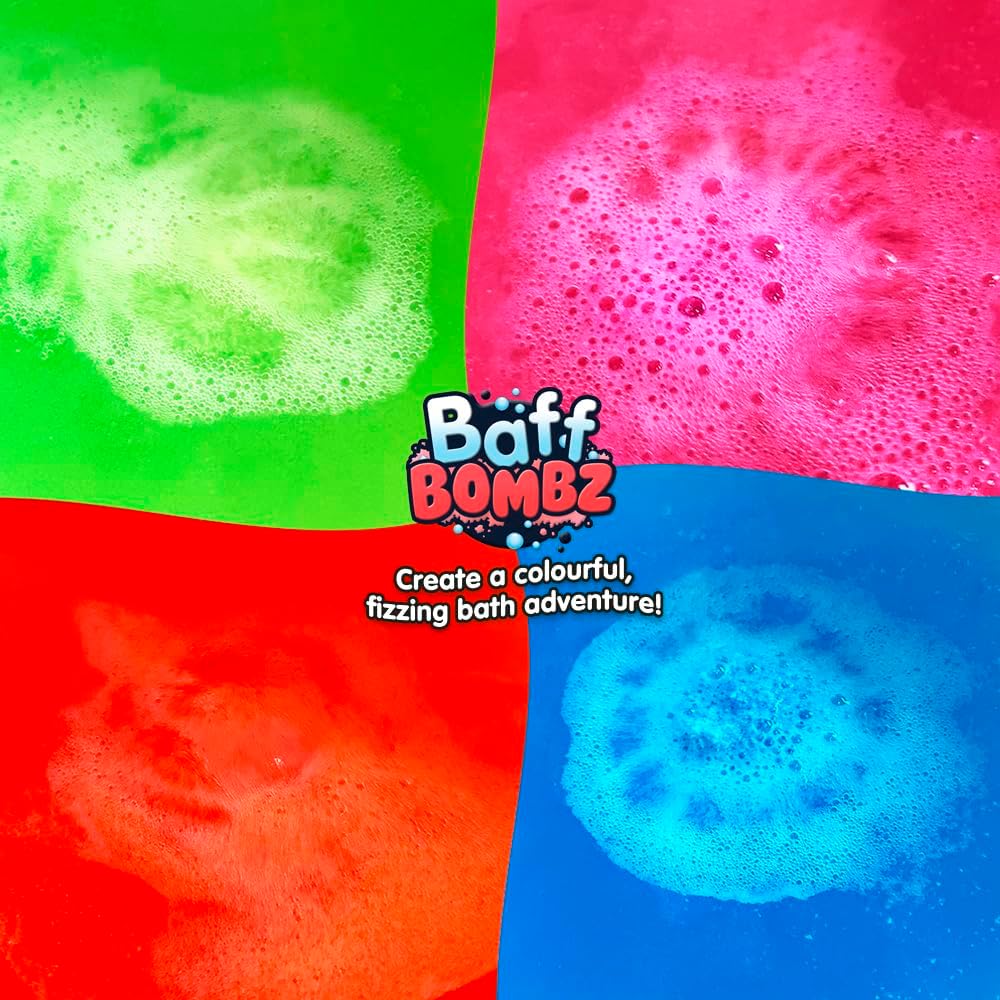 Просто хвърлете една от четирите цветни бомби за вана във водата и те веднага ще започнат да бълбукат и да оцветяват водата във ваната в цветни цветове.