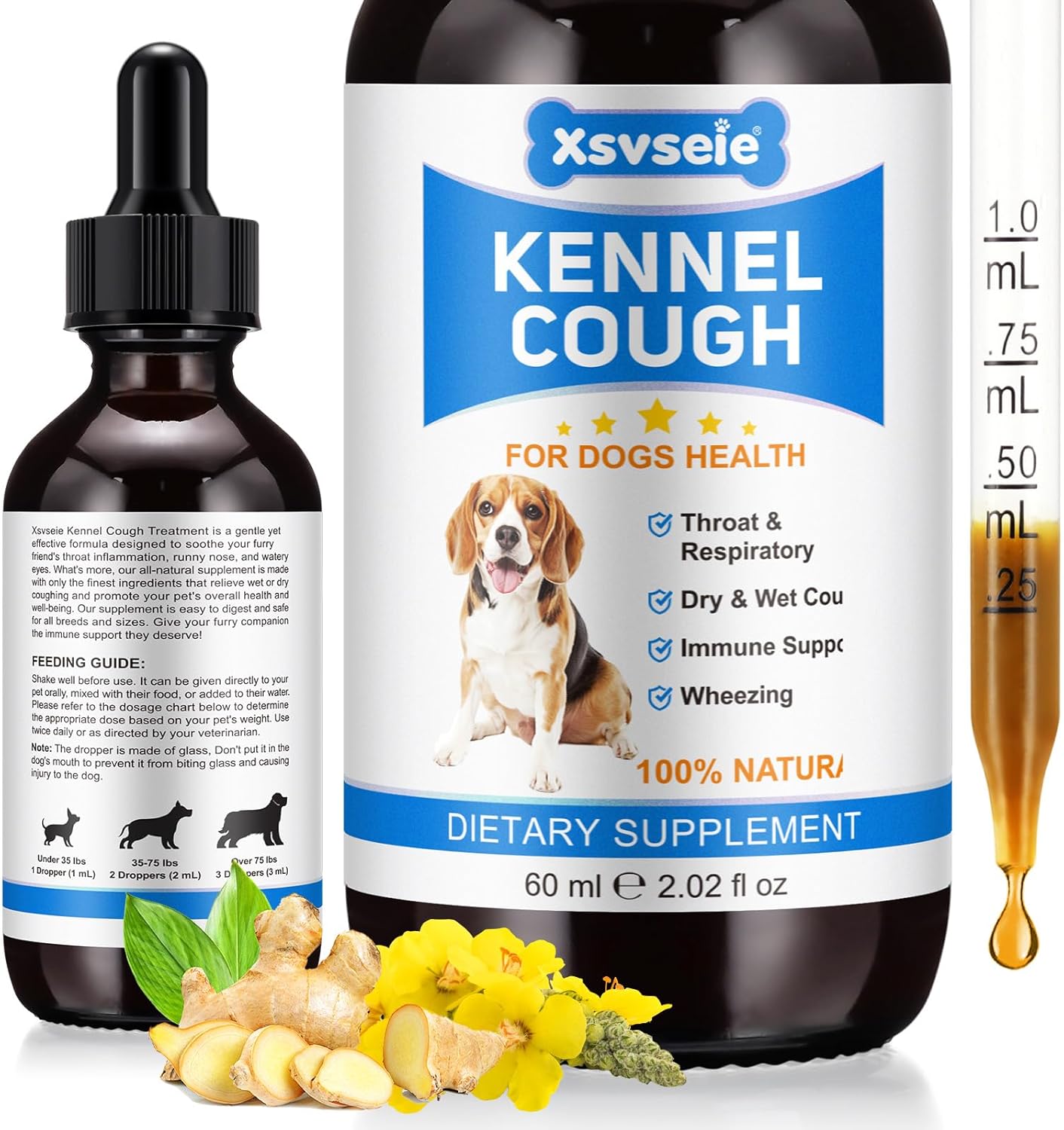 Сироп за кашлица за кучета с развъдна кашлица - Билкови капки за суха и мокра кашлица, естествено средство за кашлица, успокоява дихателните пътища и гърлото, укрепва имунната система - 60 мл
