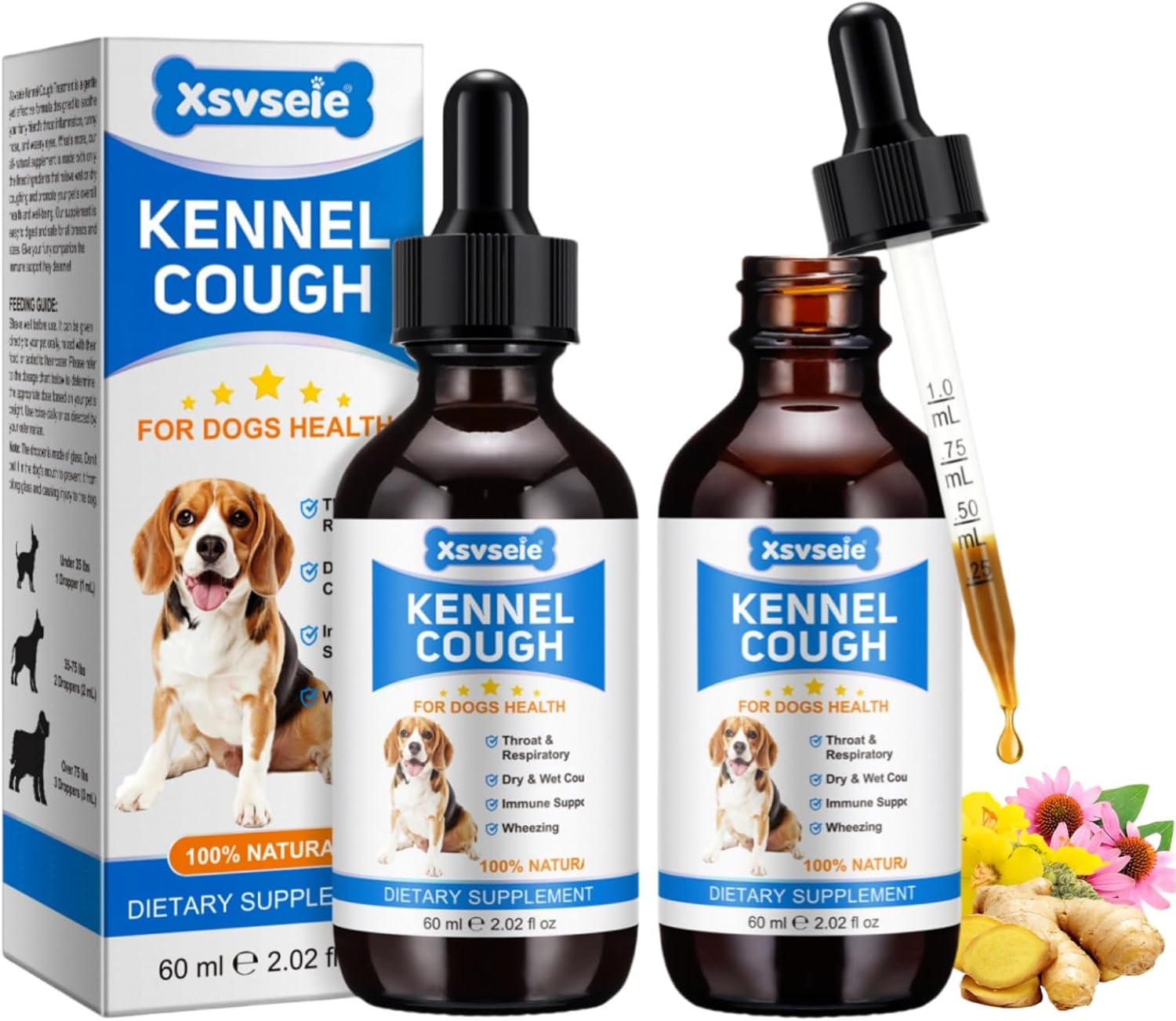 • ️ Лесна дозировка: Под 15 кг: 1 мл/ден 15-35 кг: 2 мл/ден Над 35 кг: 3 мл/ден 2 пъти дневно при остра кашлица на кучетата.