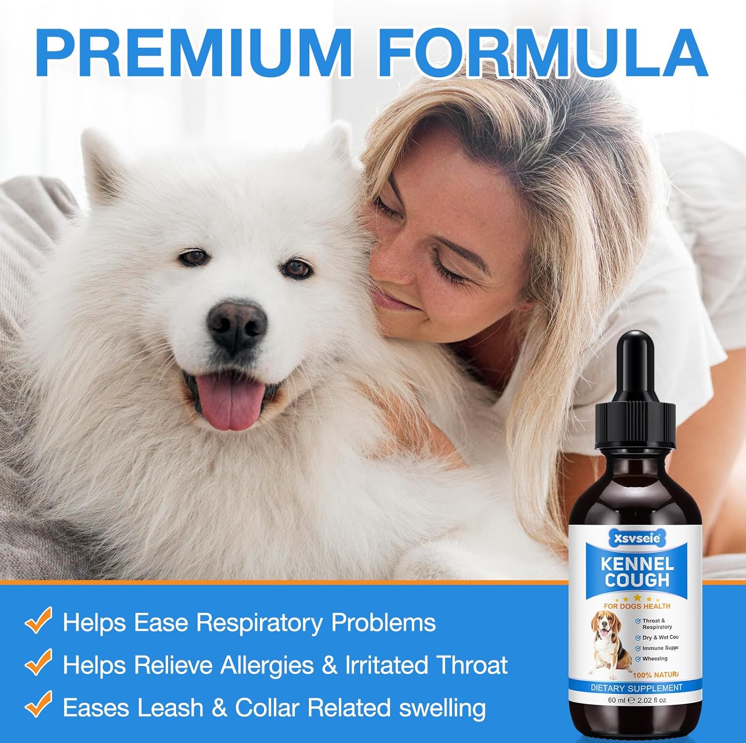 Сироп за кашлица за кучета с развъдна кашлица - Билкови капки за суха и мокра кашлица, естествено средство за кашлица, успокоява дихателните пътища и гърлото, укрепва имунната система - 60 мл