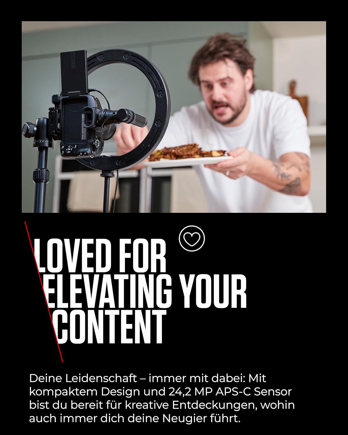 EOS R50 е безогледален фотоапарат с 24.2MP APS-C CMOS сензор и DIGIC X процесор, който подобрява вашето съдържание с професионални снимки и филми – перфектното подобрение от вашия смартфон. За непрекъснати снимки до 12 кадъра в секунда (с електронна първа завеса на затвора)1 и 15 b/s (електронно)1, двупикселовият CMOS AF II фокусира по-бързо от вас. С автоматичен брекетинг на фокуса и композиция с дълбочина на рязкост, които осигуряват рязкост в цялото изображение, можете да създадете креативно дълбочина на рязкост. С 4K2 UHD до 30p от 6K свръхсемплиране можете да записвате кадри, готови за продукция. Можете да записвате време на запис до 60 минути3, A+ и режим Movie IS. Нови ли сте в Canon или се нуждаете от подобрение? Благодарение на съвместимостта с RF обективи и EF обективи с адаптер, можете да персонализирате това много индивидуално. С въртящ се сензорен екран и 2.36 милиона пиксела EVF, можете да използвате отлични ъгли на видимост. Използвайте аксесоари с 3.5 мм вход за микрофон, HDMI изход и многофункционален студен държач. Благодарение на UVC функционалността, камерата може да се използва като висококачествена уеб камера или за стрийминг. Bluetooth и Wi-Fi ви позволяват да прехвърляте записите към мобилно устройство. 1. Съгласно тестовите стандарти на Canon с 32GB UHS-I карта (One-Shot AF, ISO 11, стандартен стил на изображението). Броят на снимките зависи от настройките и използвания обектив. 2. 4K UHD се създава чрез свръхсемплиране на 6K данните от сензора. 3. По подразбиране 1 час. Видео с висока кадрова честота (Full HD 120/100 F/s): 15 мин. Ако вътрешната температура на камерата стане твърде висока, времето за запис може да бъде съкратено. 4K 30p HQ: приблизително 50 минути при изходна температура +23°C.