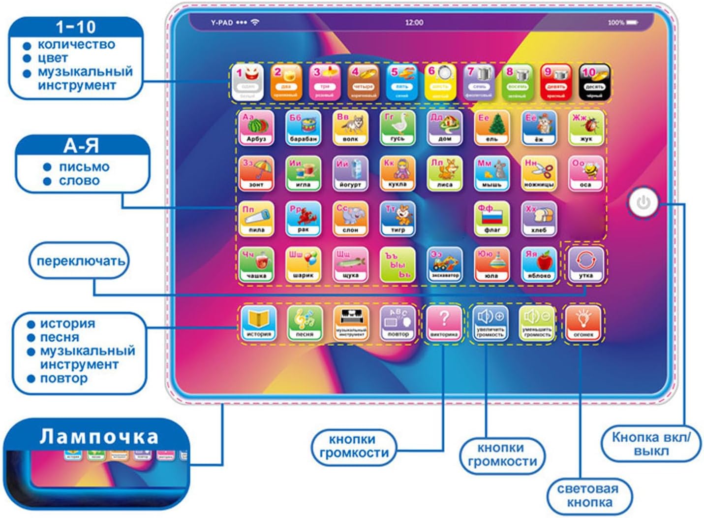 1. Многофункционален дизайн: Детският таблет-играчка е с многофункционален дизайн, включващ изучаване на руската азбука, руски песни и истории и др., което цялостно подобрява забавлението от обучението.