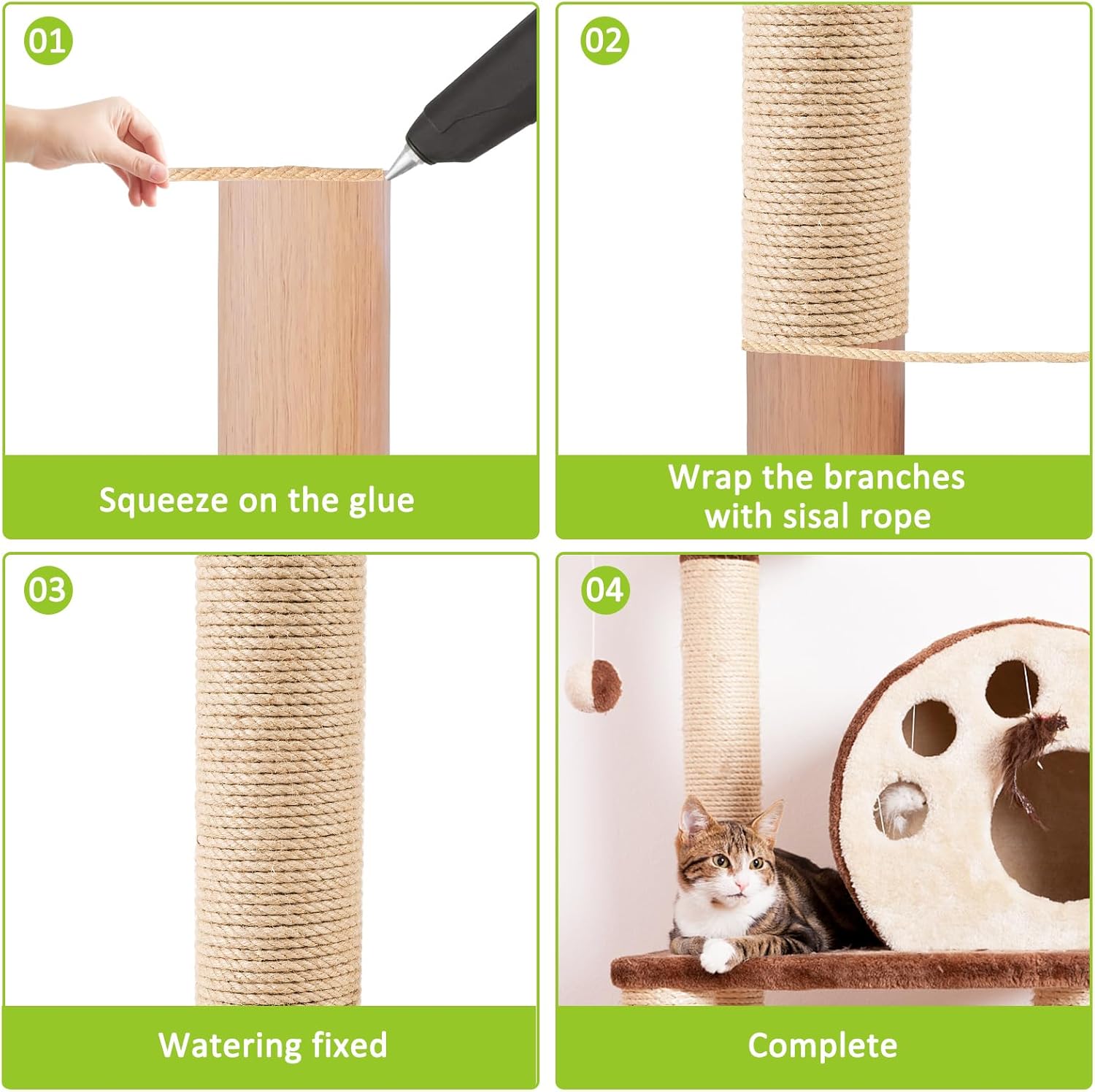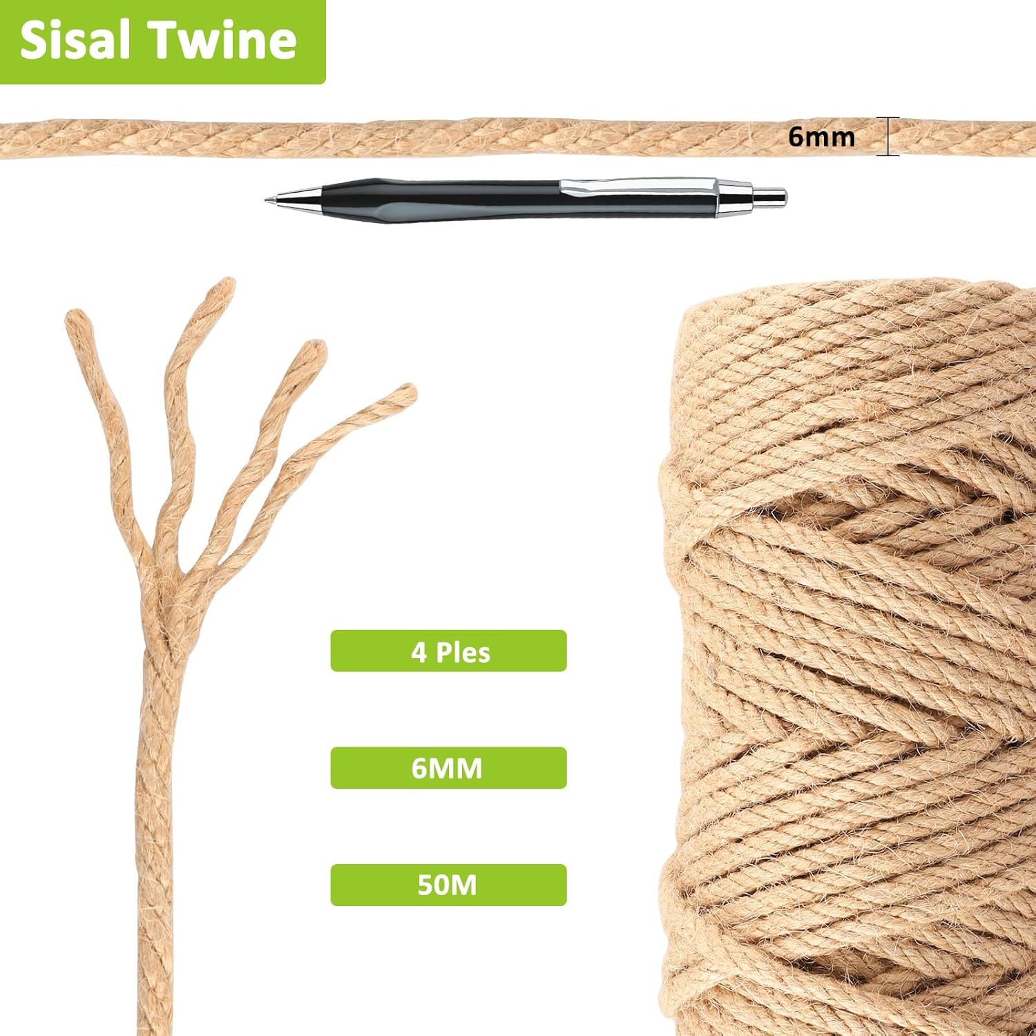 • Комплект сизалови въжета за котешко дърво: един комплект съдържа две естествени конопени въжета за мечове, с диаметър 6 мм и дължина 50 м, достатъчни за вашите разнообразни „Направи си сам“ нужди