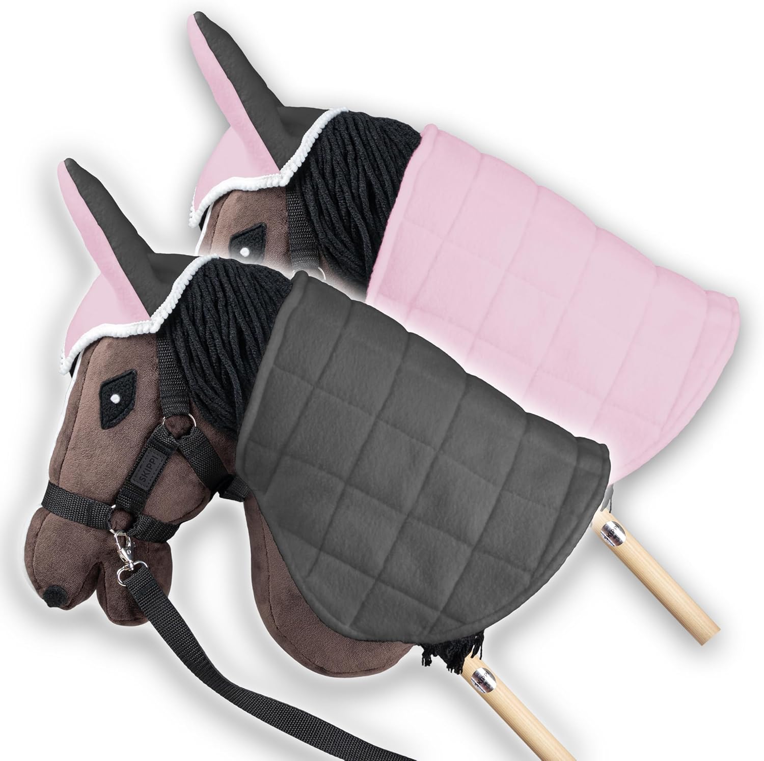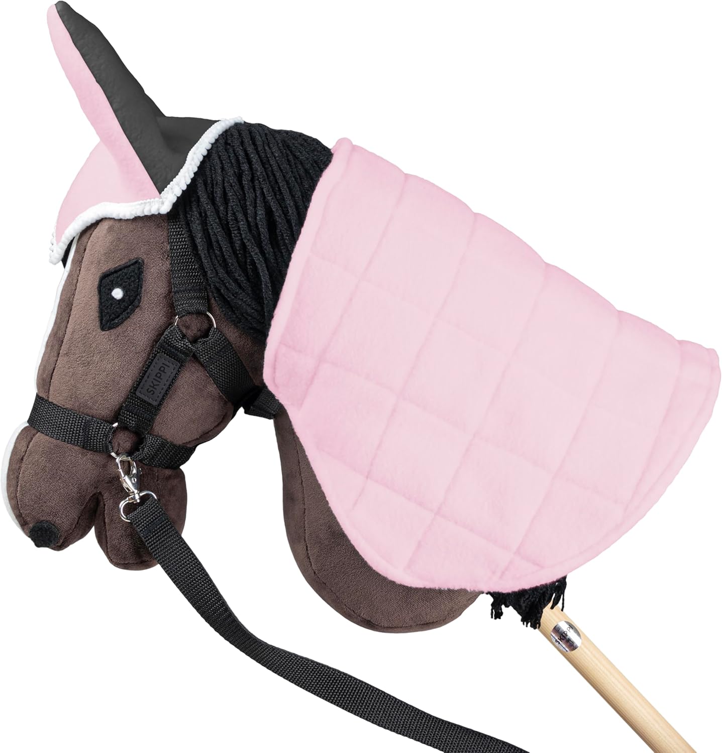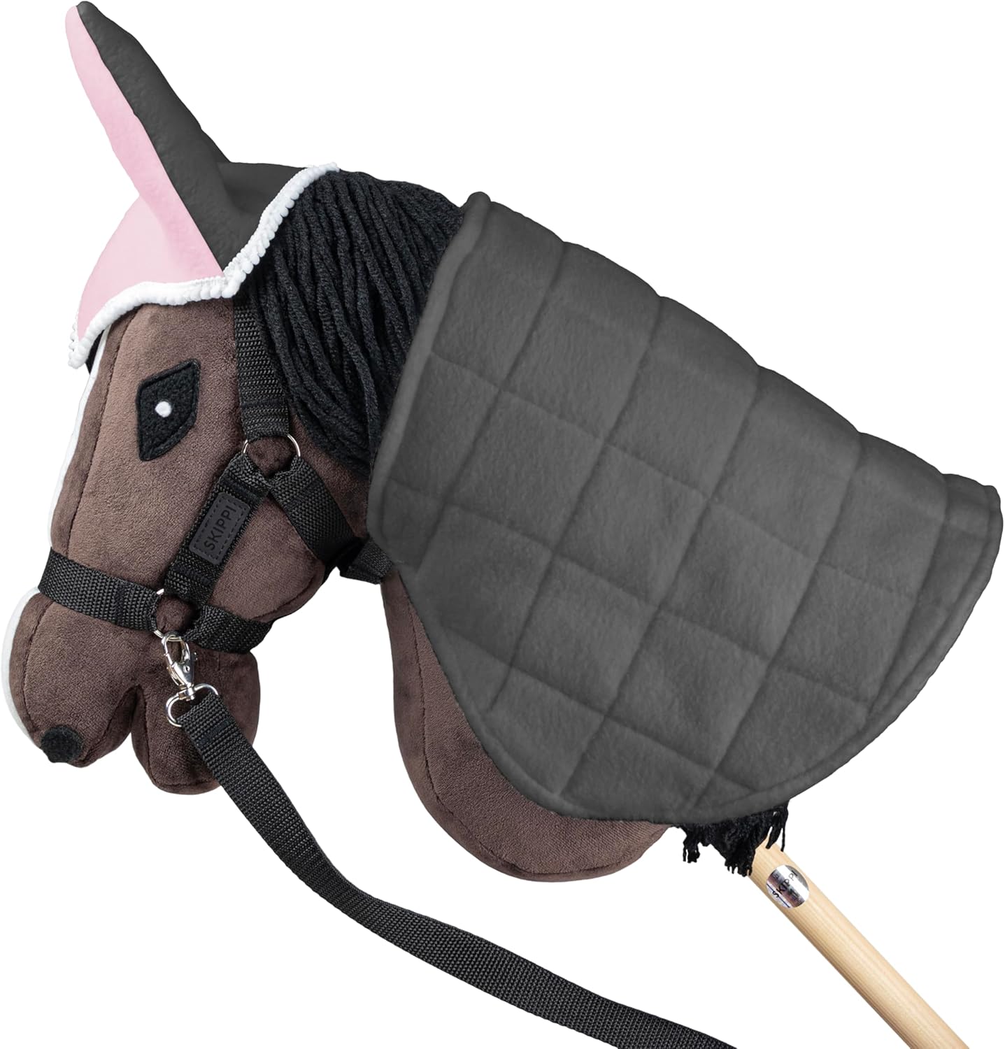 Подарък за ентусиасти на конния спорт: Одеялото и шапката за коне са не само стилни и сладки аксесоари, но и практични части от екипировката за коне. Изработени от висококачествени материали, те предлагат защита от замърсявания и повреди. Те позволяват персонализиране на коня, придавайки му уникален характер. Това е подарък, който със сигурност ще донесе радост и ще добави още повече магия към всяка дейност с коне. Ръчно изработени в Европа: Всички коне и аксесоари с марка Skippi са произведени в Европа. Продуктите на Skippi са ръчно изработени от опитни майстори, които обръщат внимание на всеки детайл, за да гарантират най-високо качество. Благодарение на европейското производство, аксесоарите и конете са издръжливи и щателно изработени, което означава, че забавлението с конете продължава по-дълго и става още по-специално. Двустранно одеяло за коне – двойно по-забавно: Всяка страна на одеялото е с различен цвят, което ви позволява да променяте външния вид на коня в зависимост от настроението или повода. Все едно имате две одеяла в едно, което позволява бърза адаптация към различни сценарии за игра или изпълнения. Дълбоката изработка на всяка страна гарантира, че и двете са еднакво привлекателни и функционални. Това двустранно одеяло е перфектният избор за тези, които ценят функционалността, съчетана с индивидуален стил.