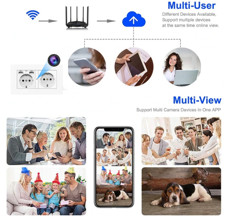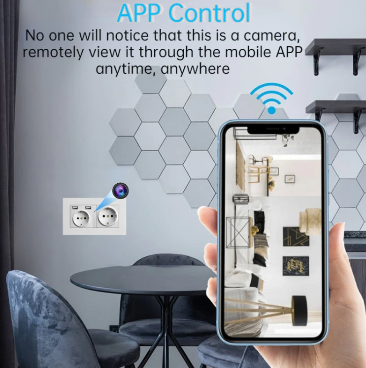 4. Мини скрита камера: Никой няма да забележи тази камера за стенен контакт. Вижте какво се случва под камерата, където и да сте, просто изтеглете мобилното приложение