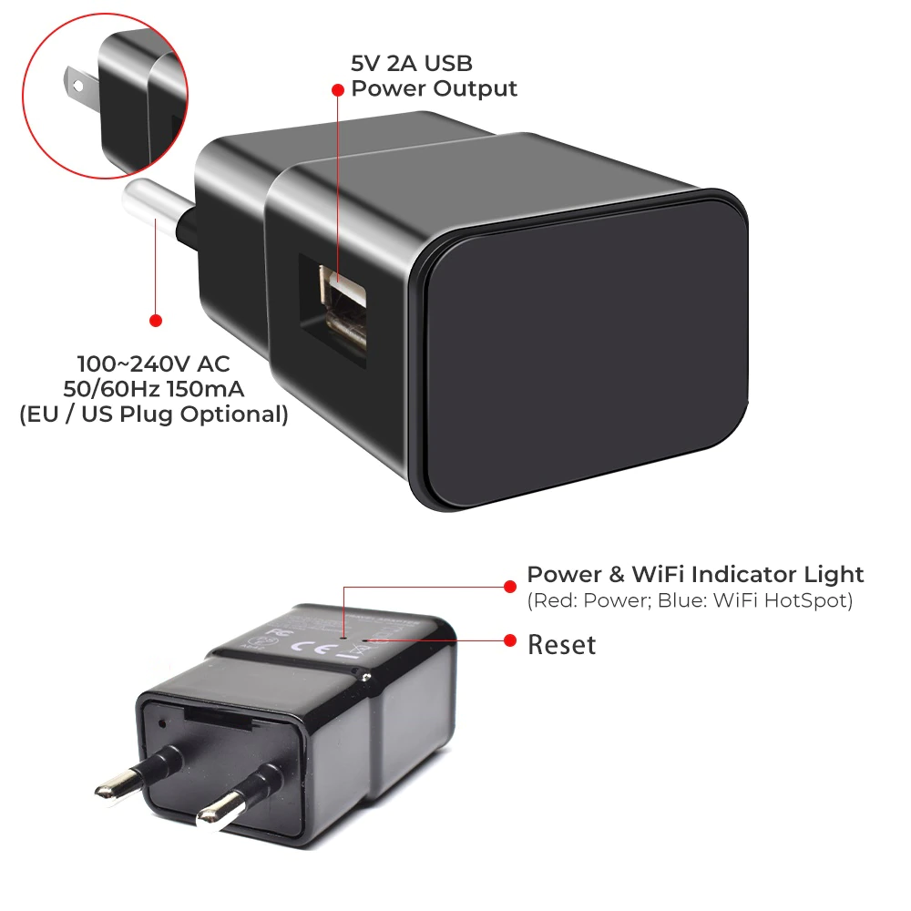 Подходяща за употреба както в дома така и в офиса. Изключително секретен начин за наблюдение на помещение, просто свържете с приложението и имате нон-стоп видео наблюдение а всички останали ще виждат просто един адаптер за зареждане на устройство.