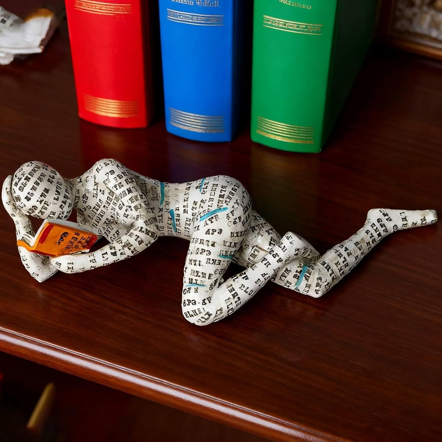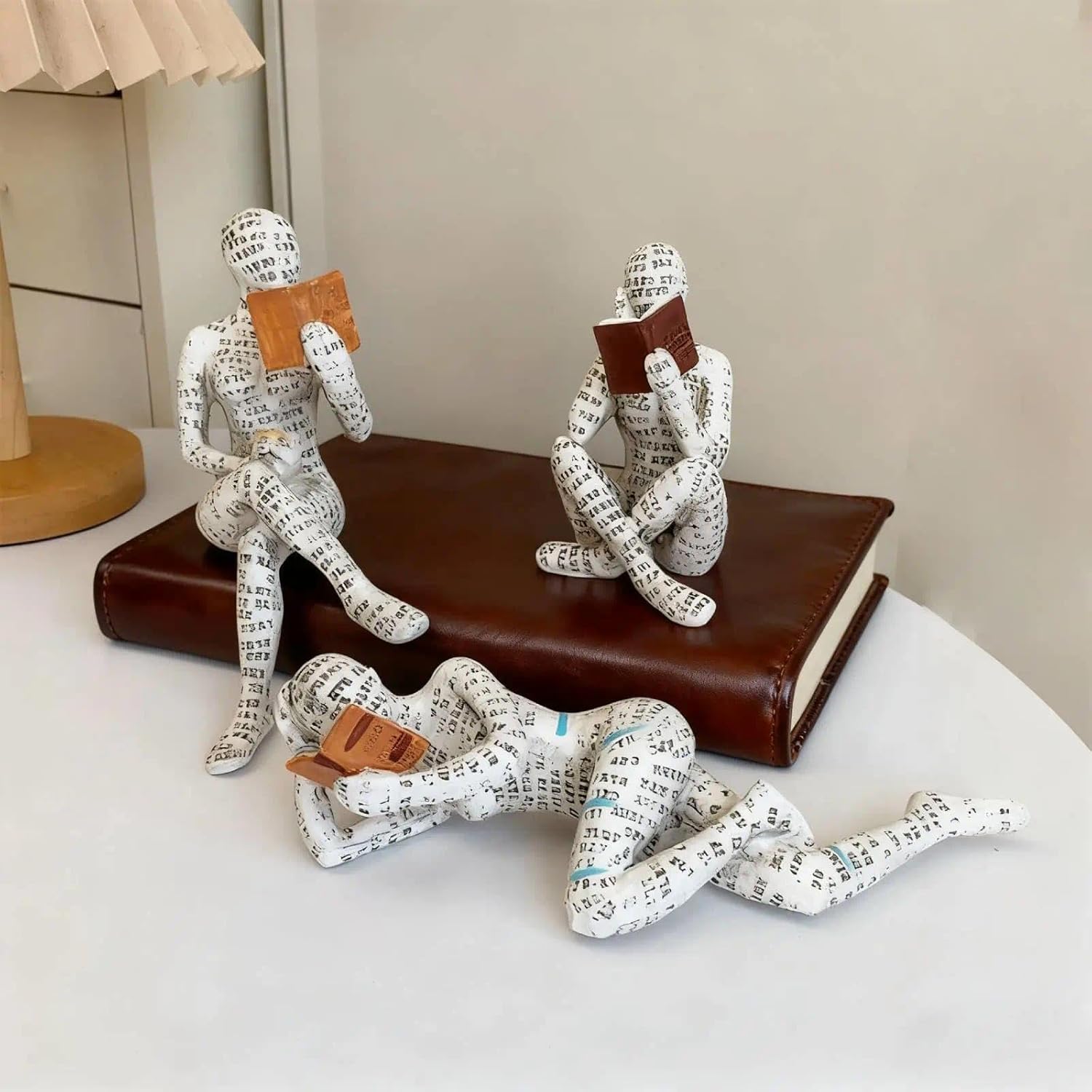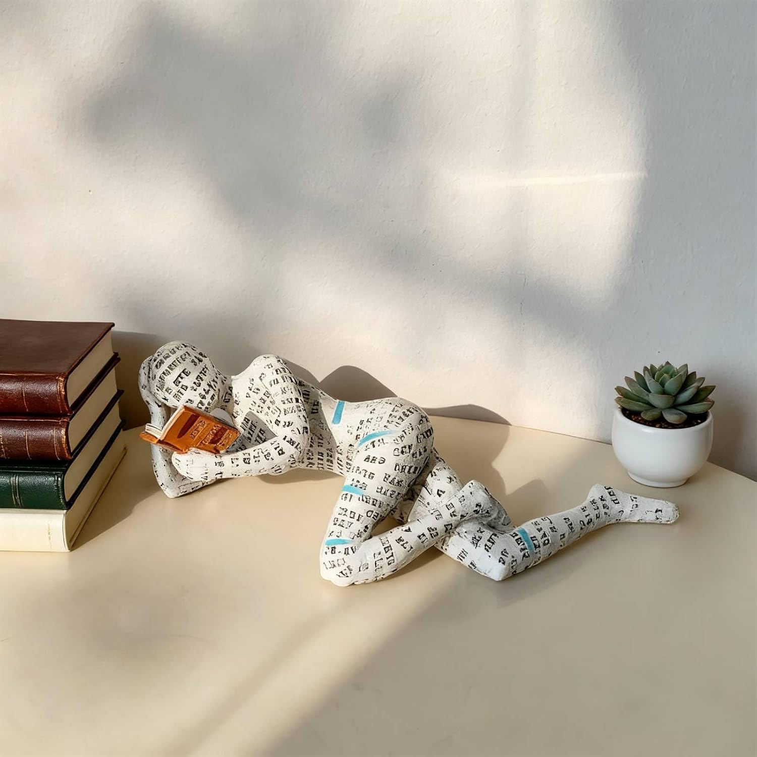 Скулптура от смола за любител на книги, статуя на четяща жена за рафт за книги - орнамент за абстрактен мислител, декорация за рафт за хол, четещ плъх, подарък за читатели