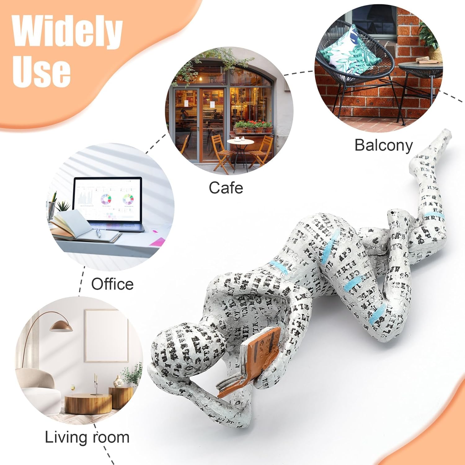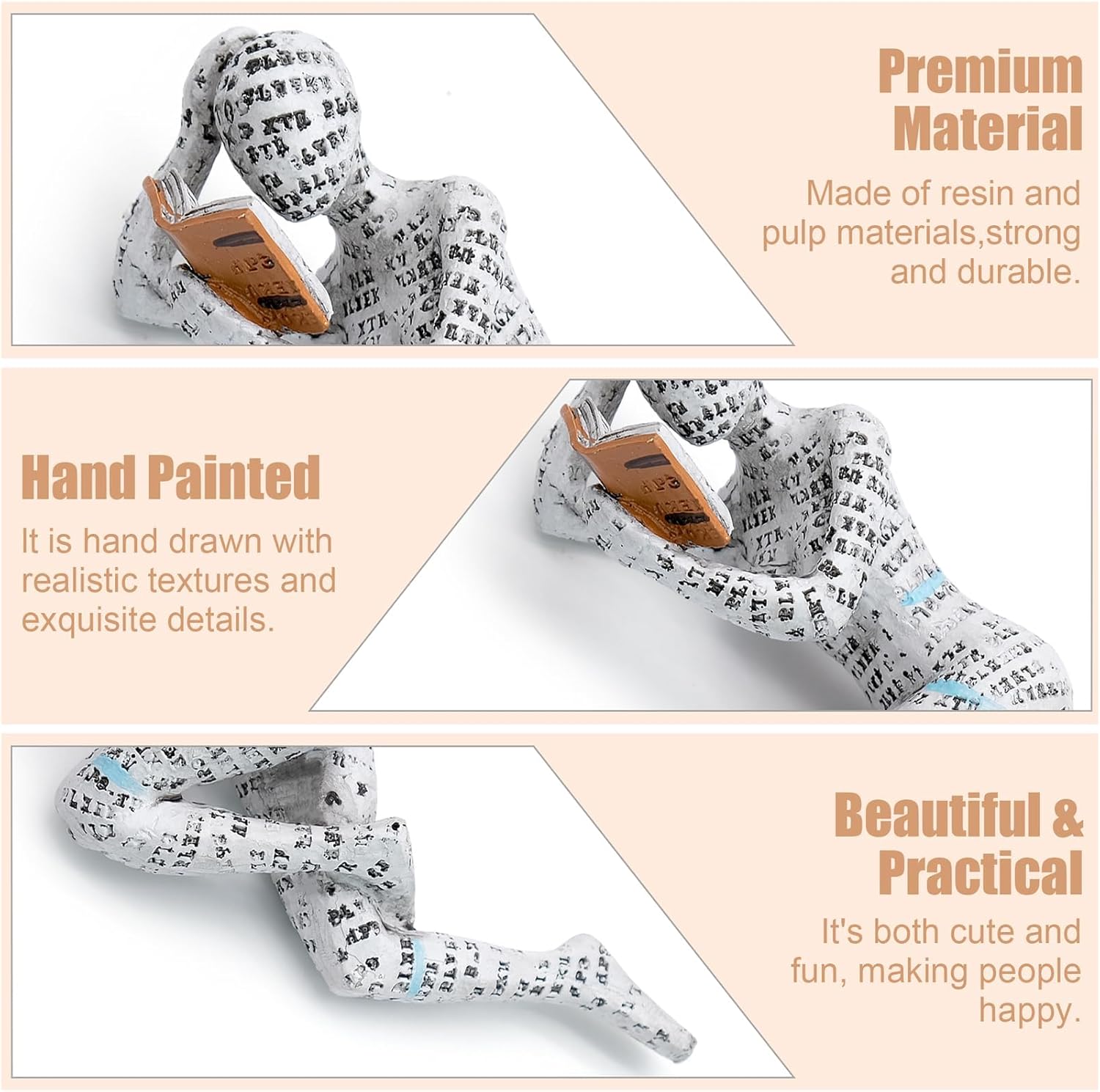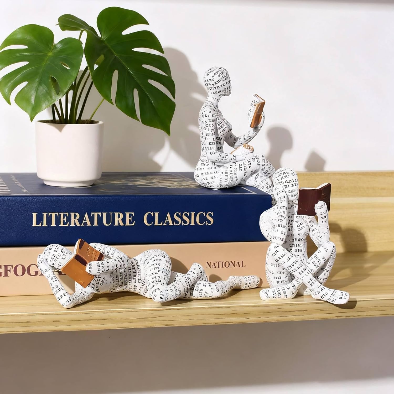 Скулптура от смола за любител на книги, статуя на четяща жена за рафт за книги - орнамент за абстрактен мислител, декорация за рафт за хол, четещ плъх, подарък за читатели