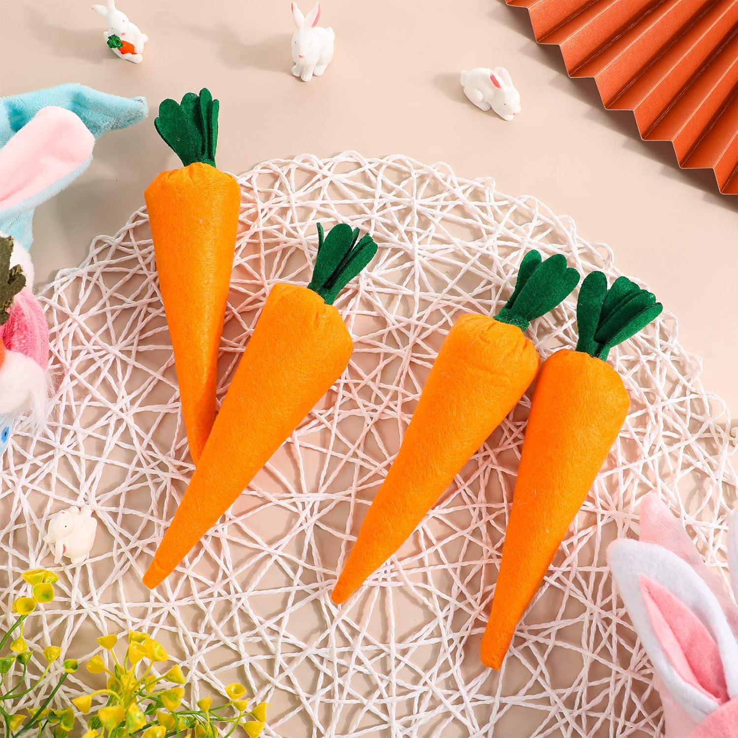 Завържете изкуствените моркови с ленено въже и ги окачете на великденската елха, стената, вратата, прозореца и камината, за да украсите великденското парти и семейната украса, която е красива и атрактивна.