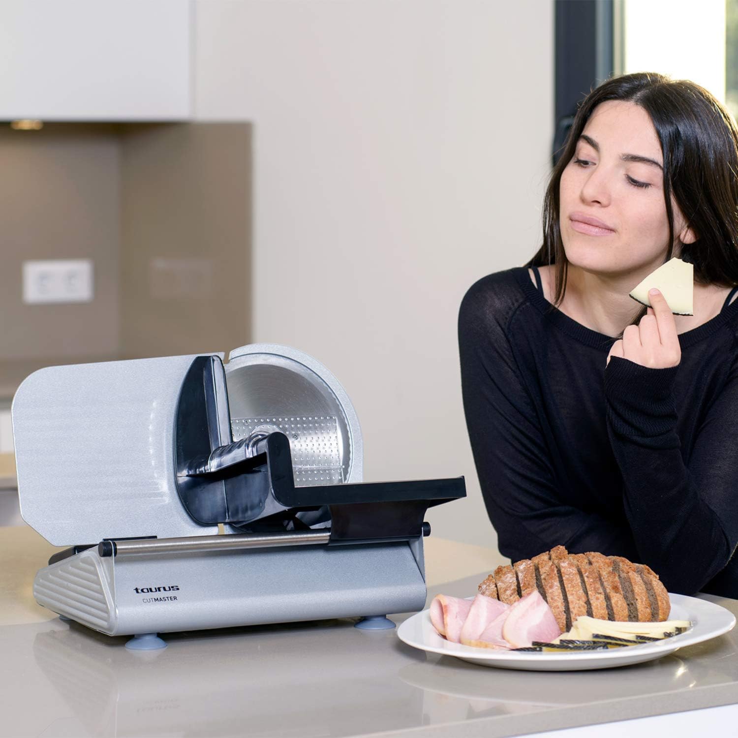 Нарязвайте месо, колбаси, зеленчуци, хляб, сирене, плодове и много други с Cutmaster Compact. Със своето 17-милиметрово острие от неръждаема стомана и предпазен плъзгач можете да нарязвате всякакви храни на желаната дебелина от 1 до 15 мм. Насладете се на бързи, прецизни и безопасни разрези с Cutmaster Compact и оставете настрана традиционната дъска за рязане и нож.