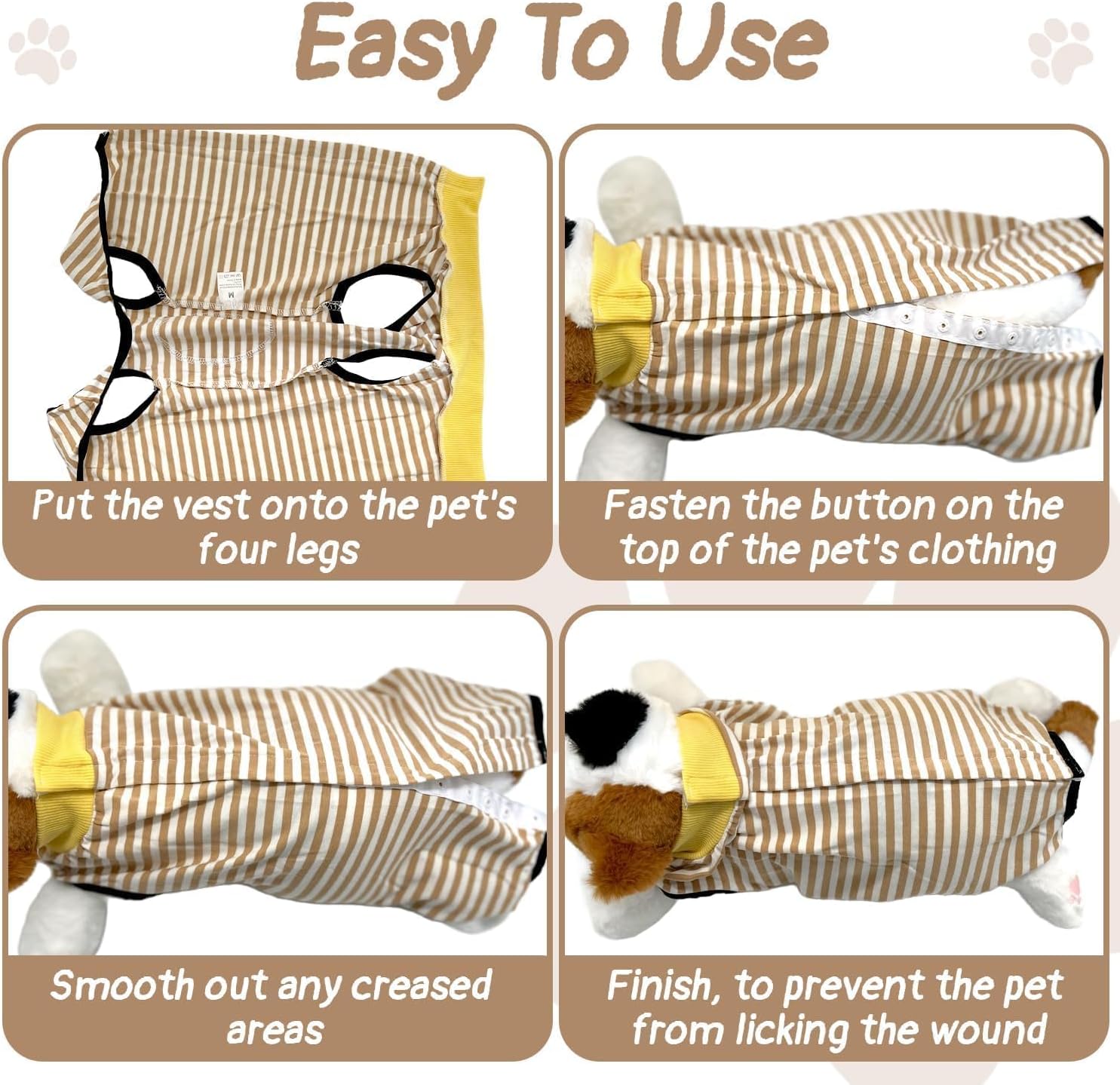 • [Практичен дизайн за комфорт и прилягане]: Костюмът за възстановяване е с лесни за употреба копчета на гърба за лесно обличане и събличане. Регулируемите опции за размер осигуряват перфектно прилягане, а уникалният дизайн на костюма позволява удобни почивки за тоалетна за мъжки кучета, без да се налага да го събличат.
