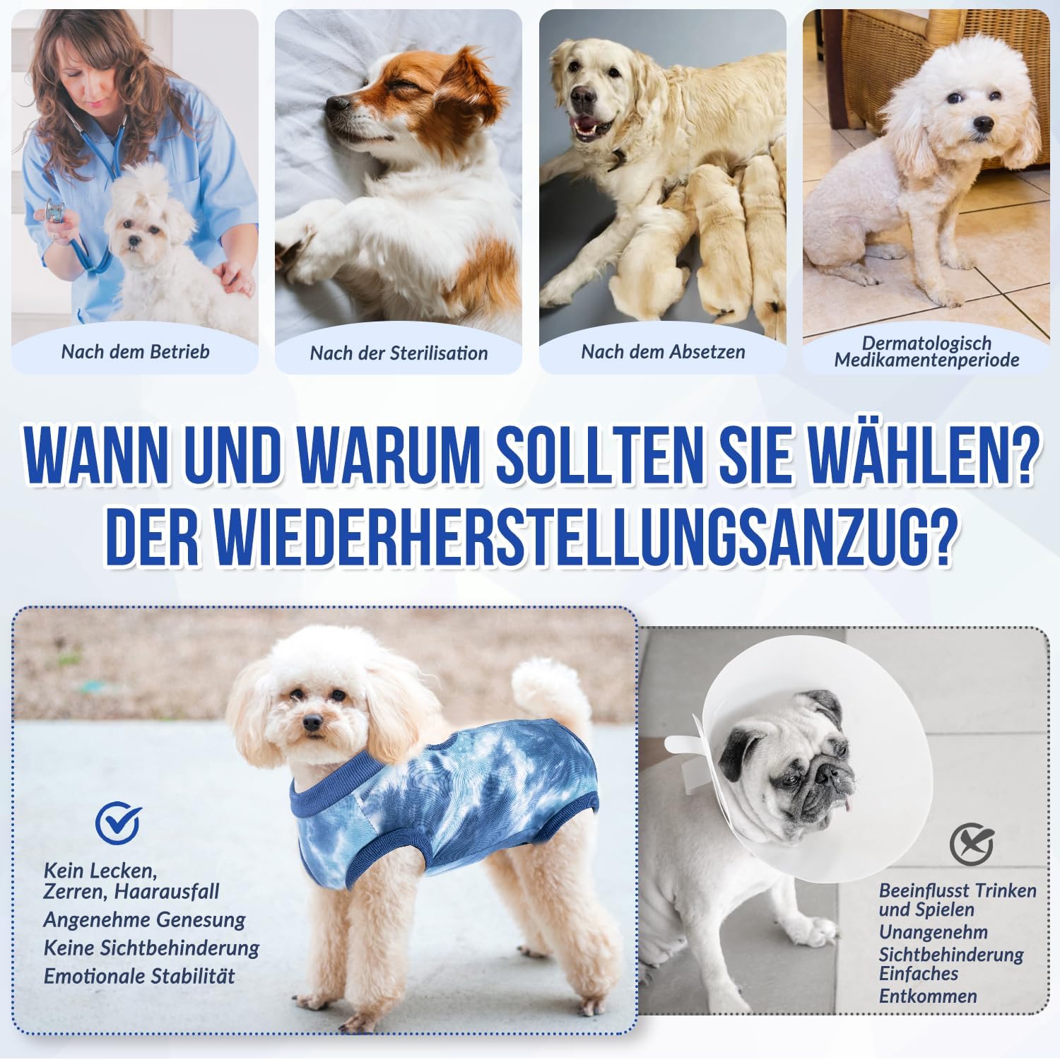 • [Предотвратява облизването и драскането] Тази дреха за следоперативно възстановяване предпазва вашия четириног приятел от драскане и облизване на хирургични рани, като по този начин намалява риска от инфекция и по-нататъшни наранявания. Подходяща е за употреба след операции, кастрация/стерилизация, лечение на кожата и отбиване. Дрехата за следоперативно възстановяване може да се използва и като домашна престилка за вашето куче, осигурявайки комфорт и лесен достъп до тоалетната.