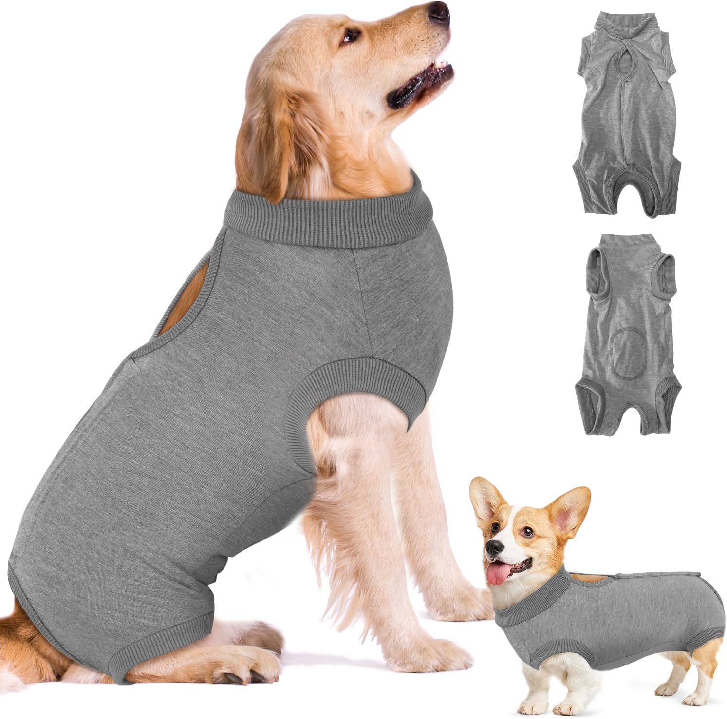 Следоперативен боди за кучета, дишащ и удобен еднокомпонентен за кучета с регулируемо велкро закопчаване, костюми за защита на рани за кучета, предотвратяващи облизване - алтернатива на електронна каишка (сив, XL)
