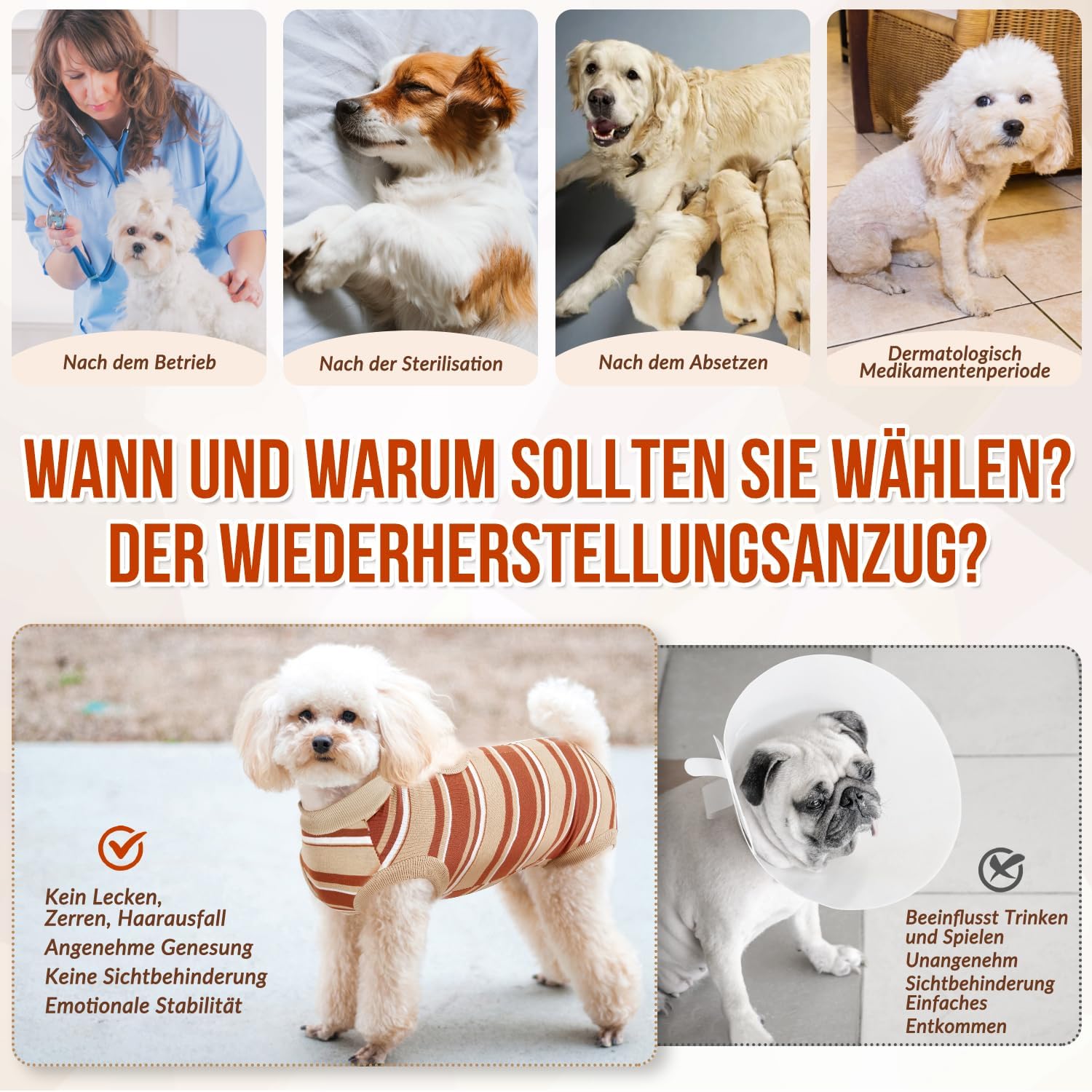 • [Заместител на електронна каишка/превръзка] Гащеризонът за кучета Eyein позволява на вашето куче да се движи, яде, пие, спи и играе, без конусът да му пречи, и осигурява по-добро покритие на проблемните зони. Той гарантира комфорта на вашия домашен любимец по време на процеса на възстановяване и работи по-добре от традиционните електронни или конусни каишки.