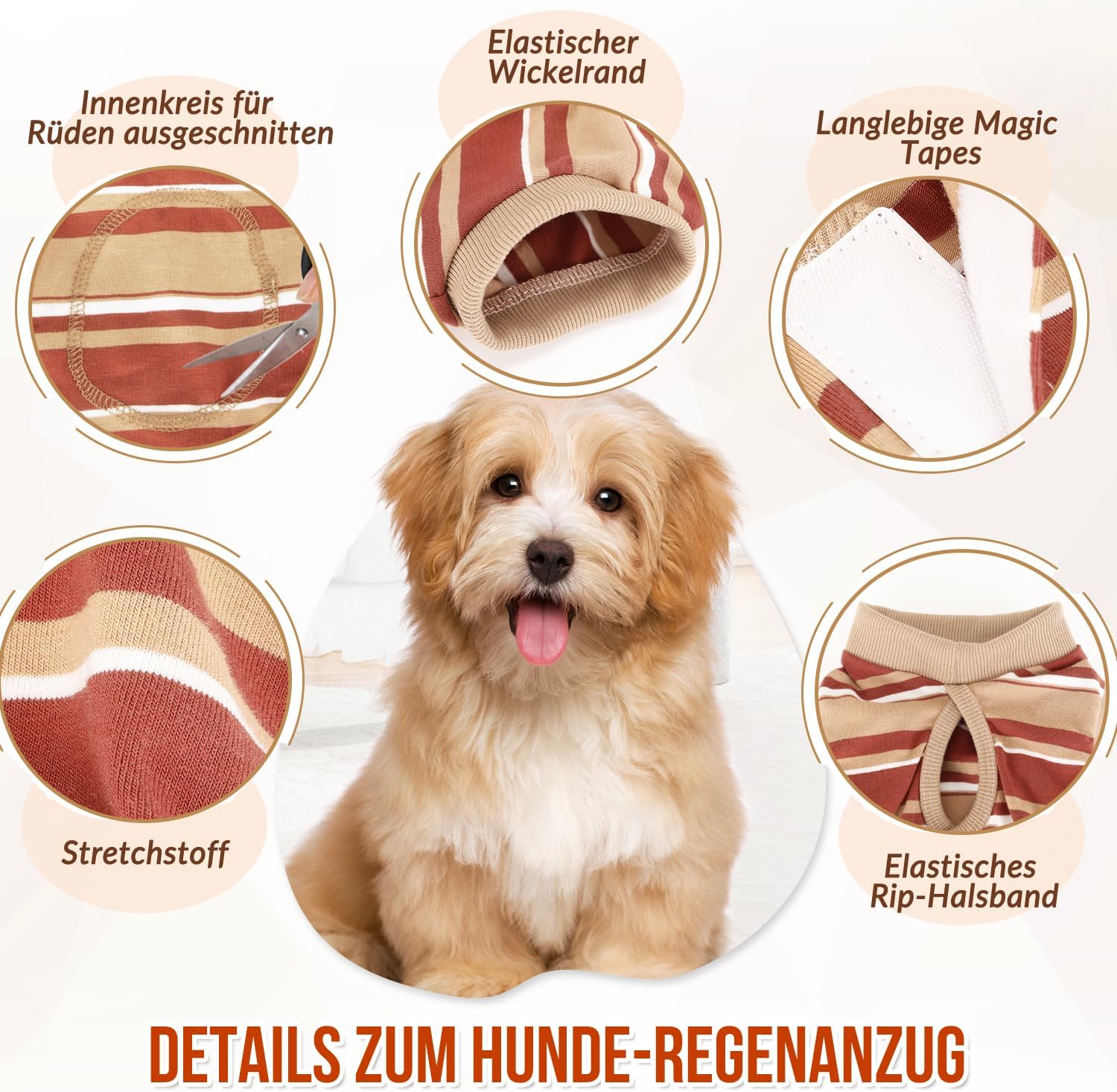 Следоперативен боди за кучета, дишащ и удобен еднокомпонентен за кучета с регулируемо велкро закопчаване, костюми за защита от рани за кучета, предотвратяващи облизване - алтернатива на електронна каишка (кафяв, XXL)
