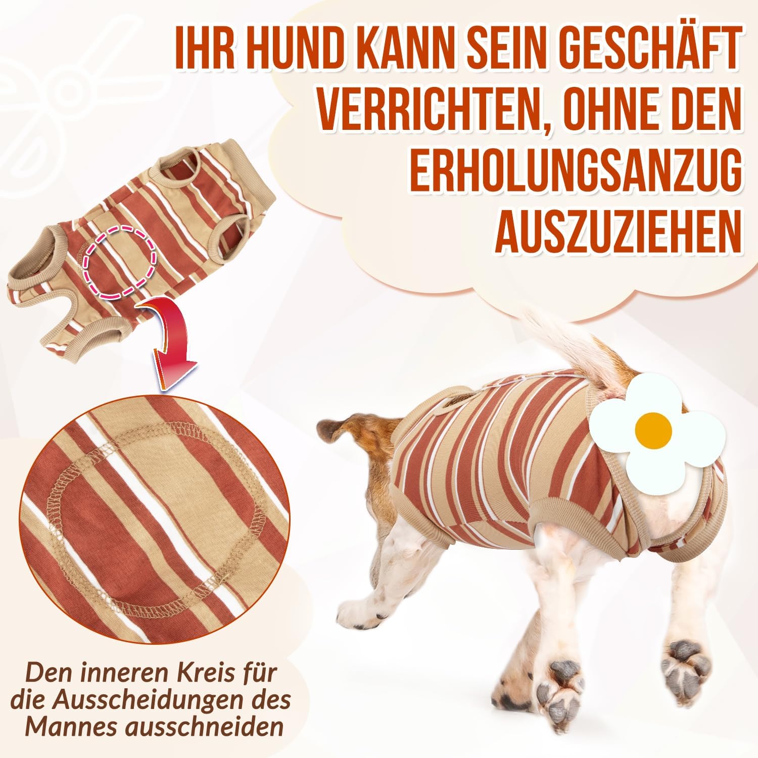 • 【За мъжки и женски домашни любимци】 Домашните любимци могат да се облекчават, без да се събличат или цапат. Моля, обърнете внимание преди поръчка: Тази престилка за кучета е идеална за стерилизирани женски кучета, но не и за кастрирани мъжки кучета. Проектирали сме кръгъл отвор в долната част на костюма за възстановяване на кучетата, който може да се разреже, за да се улеснят телесните функции, а след това и за да се премахне капакът на хирургическата зона.