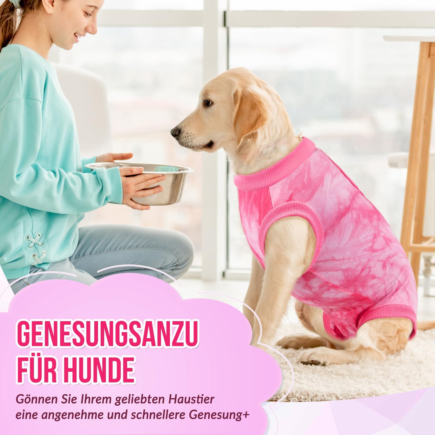 Следоперативен боди за кучета, дишащ и удобен еднокомпонентен за кучета с регулируемо велкро закопчаване, костюми за защита от рани за кучета, предотвратяващи облизване - алтернатива на електронна каишка (розов, XL)