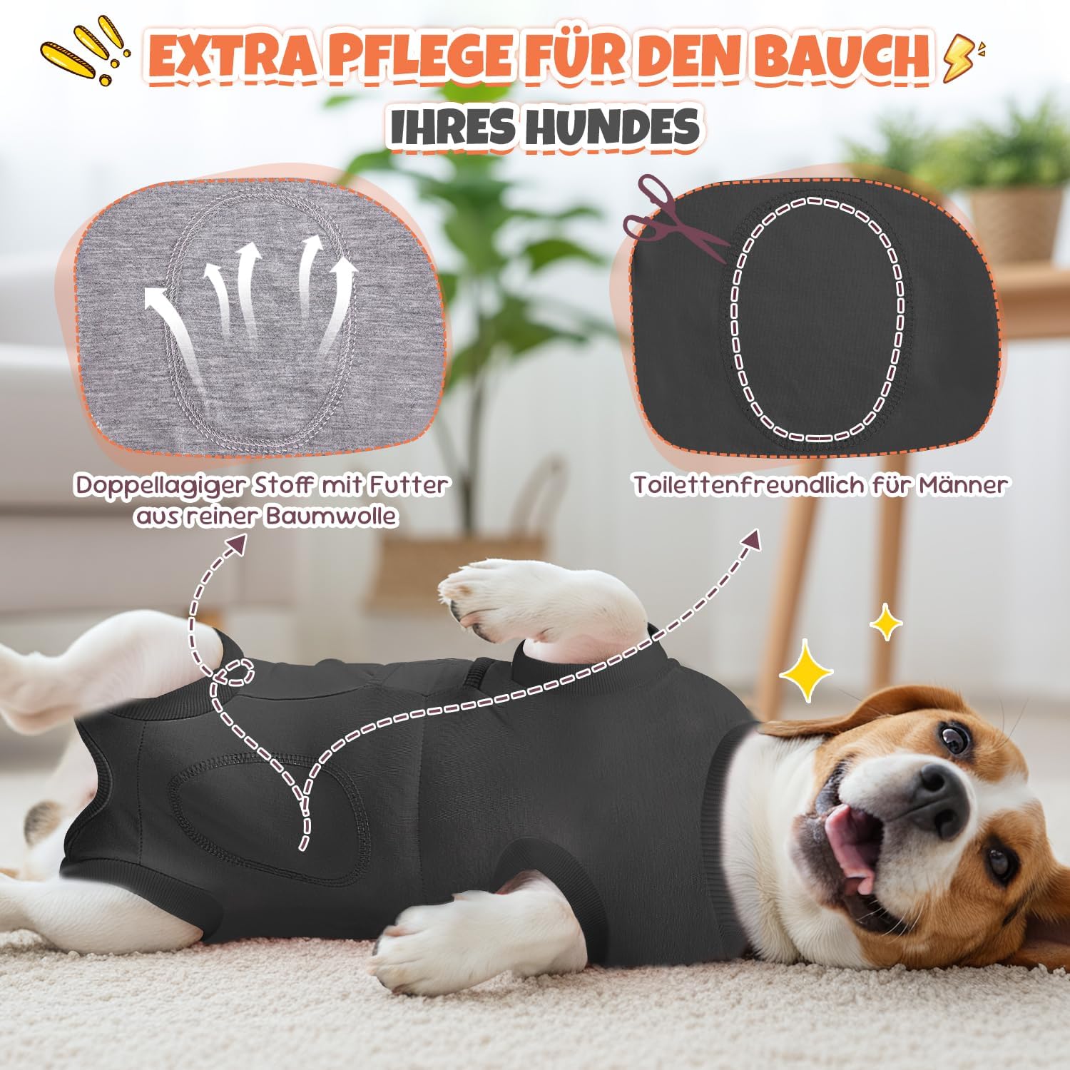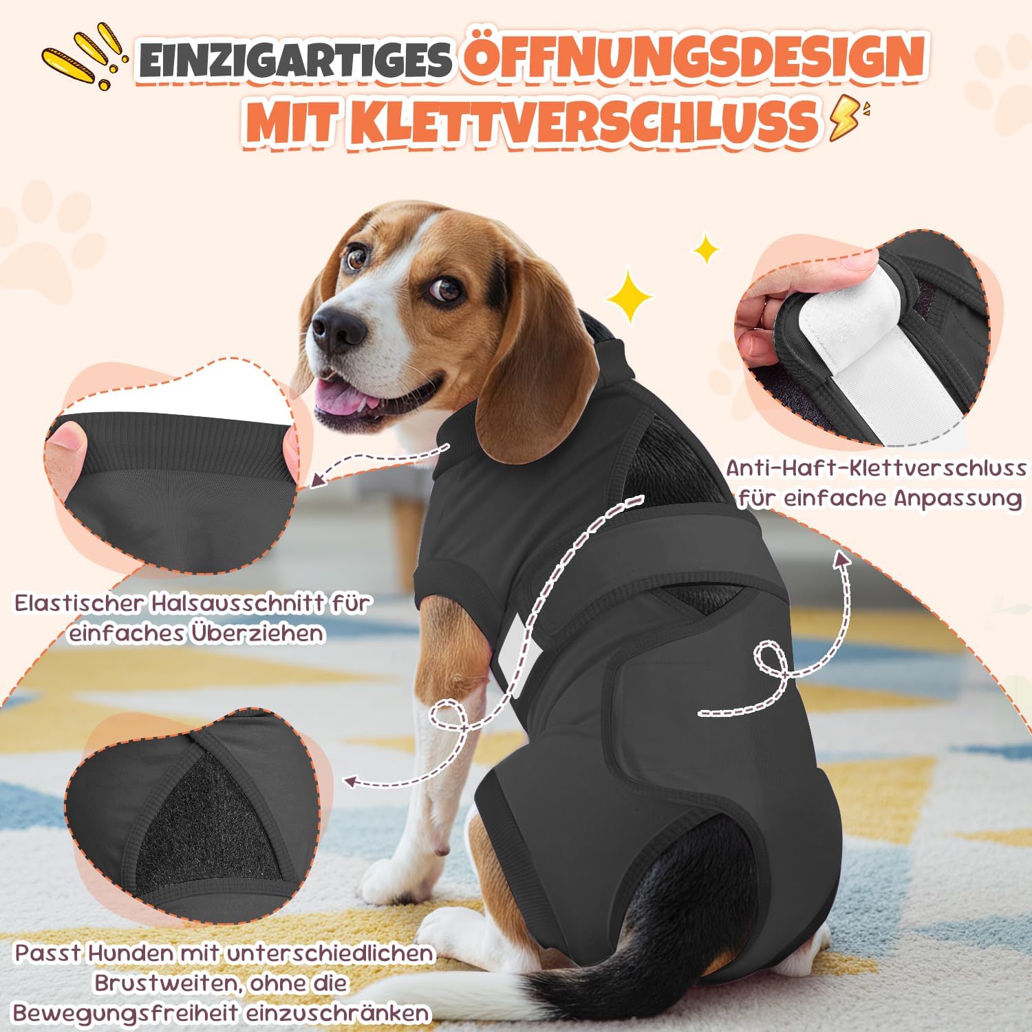 • Универсална защита --- Този хирургически костюм за кучета ефективно предотвратява облизването и одраскването на рани, което го прави идеален за възстановяване след кастрация/стерилизация, кожни процедури, алергии и отбиване. Удобният му дизайн е подходящ дори за ежедневна употреба, когато кучето ви се нуждае от допълнителна защита.