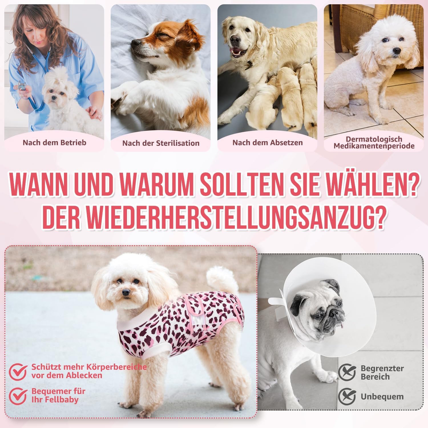 • 【Универсална употреба】 – Костюмът за възстановяване на кучета е подходящ за последващи грижи, например след кастрация или стерилизация, както и за следродилна грижа. Той е добра алтернатива на конуса, тъй като позволява на кучето да играе и да се храни свободно. След възстановяване, костюмът за възстановяване може да се носи и като удобно облекло за дома.