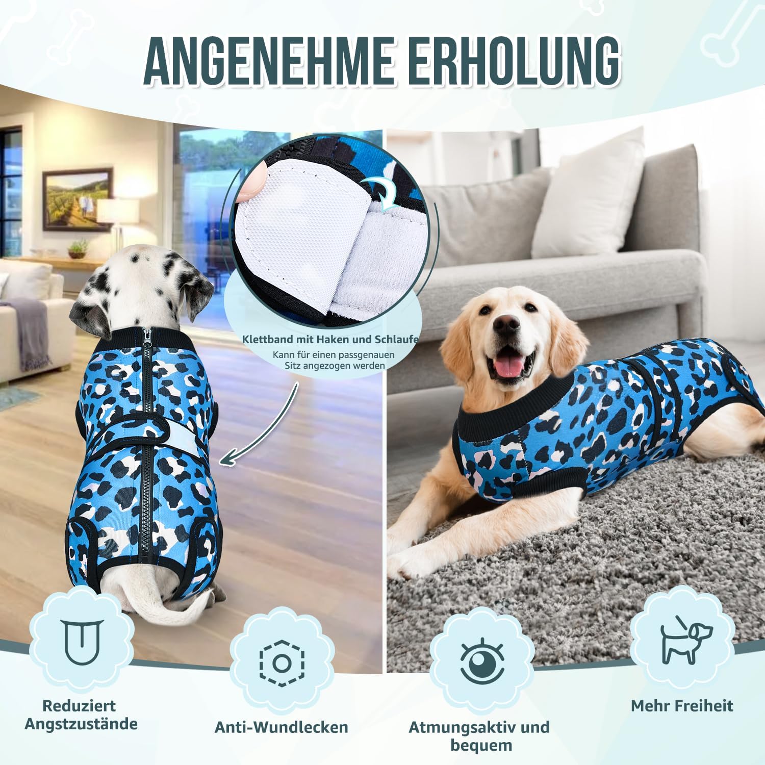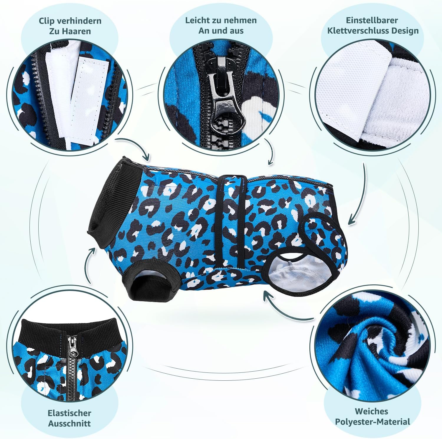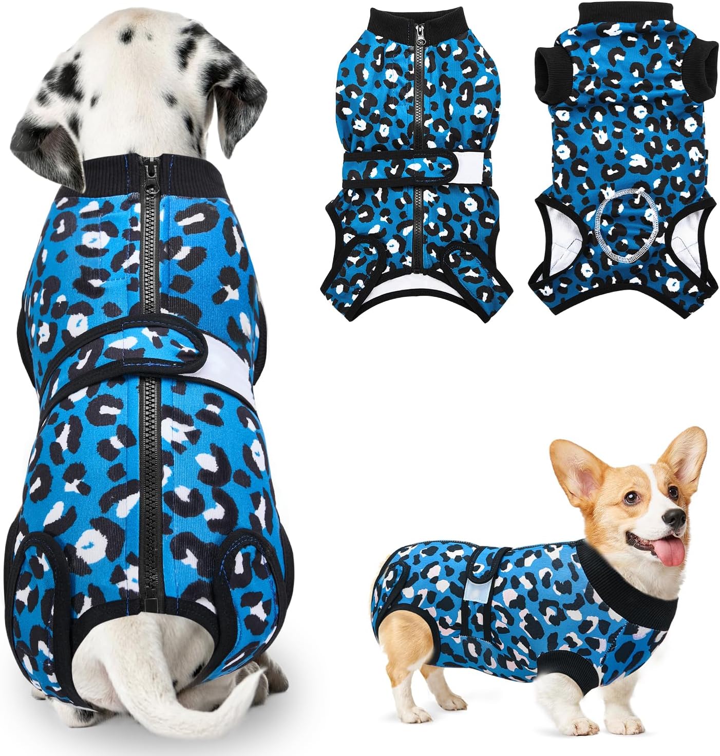 Следоперативен боди за кучета, костюм за защита от рани за женски и мъжки кучета с цип и велкро колан - против облизване и защита от рани, дишащ еднокомпонентен за кучета след операция (синьо-зелен, 4XL)