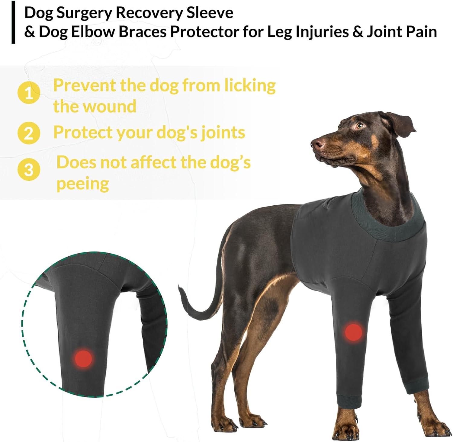 Следоперативен боди за кучета, костюми за защита на рани за кучета с крака, защита на предните крака за ранени кучета, хирургически боди против облизване за кучета, алтернатива на E-каишка, сив, XL