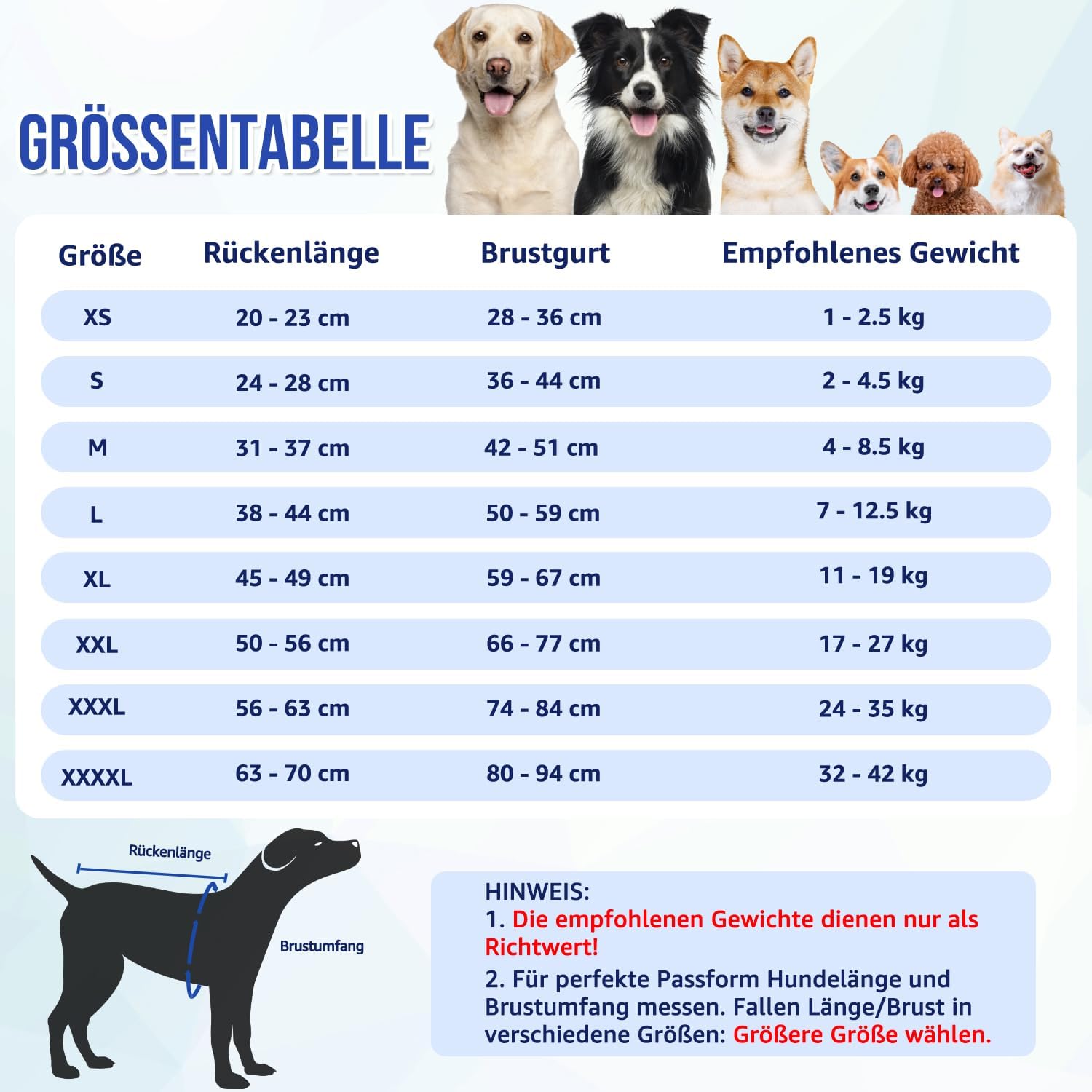 • 【Универсална употреба】 – Костюмът за възстановяване на кучета е подходящ за последващи грижи, например след кастрация или стерилизация, както и за следродилна грижа. Той е добра алтернатива на конуса, тъй като позволява на кучето да играе и да се храни свободно. След възстановяване, костюмът за възстановяване може да се носи и като удобно облекло за дома.