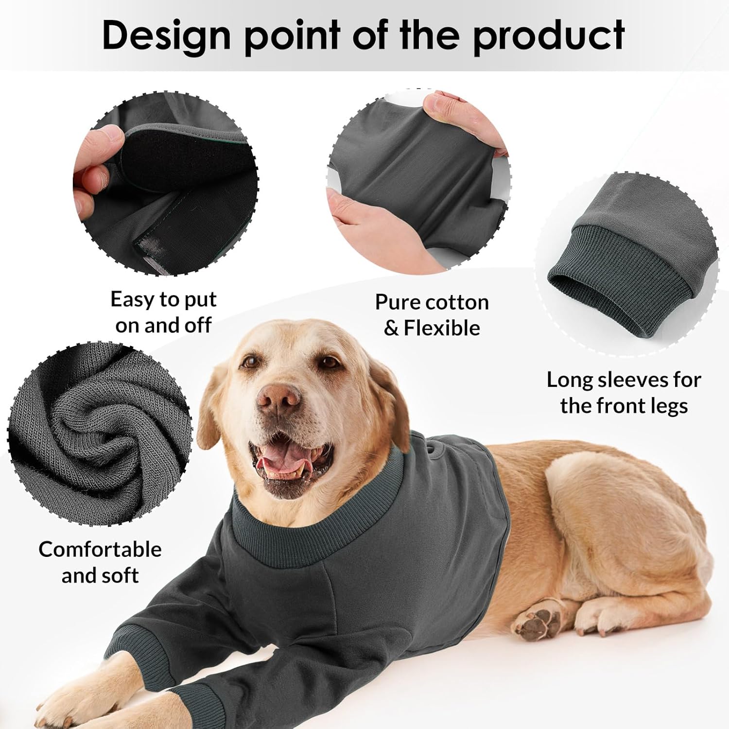 Следоперативен боди за кучета, костюми за защита от рани за кучета с крака, защита на предните крака за ранени кучета, следоперативен боди против облизване за кучета, алтернатива на E-каишка, сив, XXL