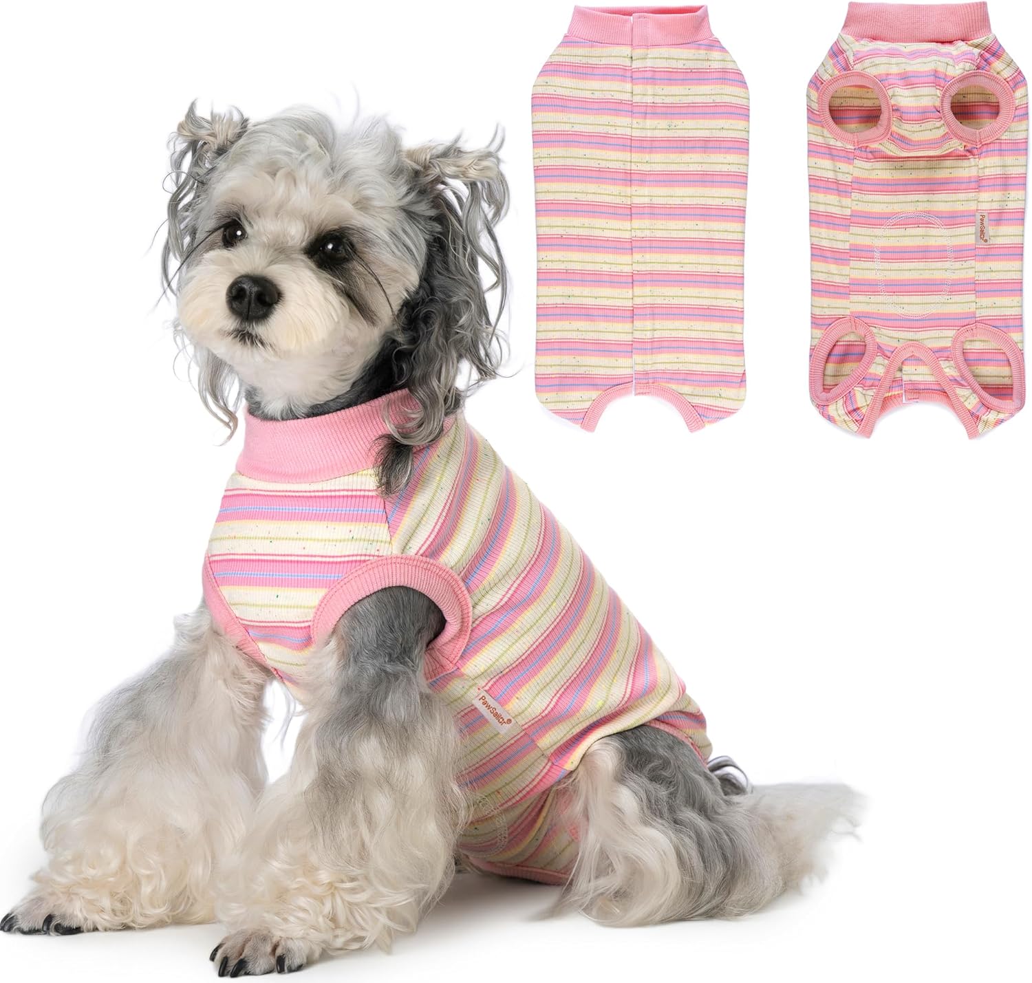 • Многофункционален: Този следоперативен гащеризон за кучета е идеален за различни нужди, включително кастрация, грижа за рани и отбиване; той предотвратява облизване, хапане и инфекции, като гарантира, че кучето ви се чувства комфортно и щастливо по време на възстановяване; може да се използва и като пижама за вътрешна употреба, за да се предотврати линее и да се поддържа домът ви чист.