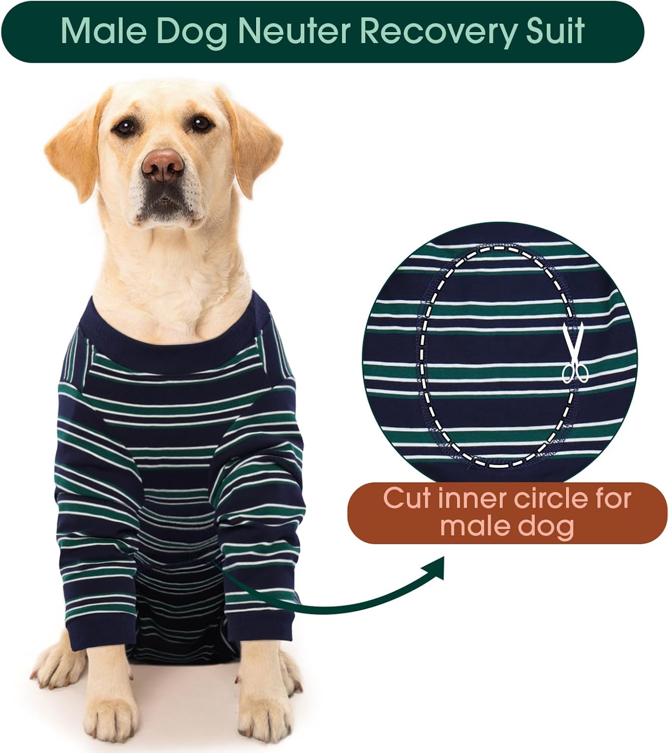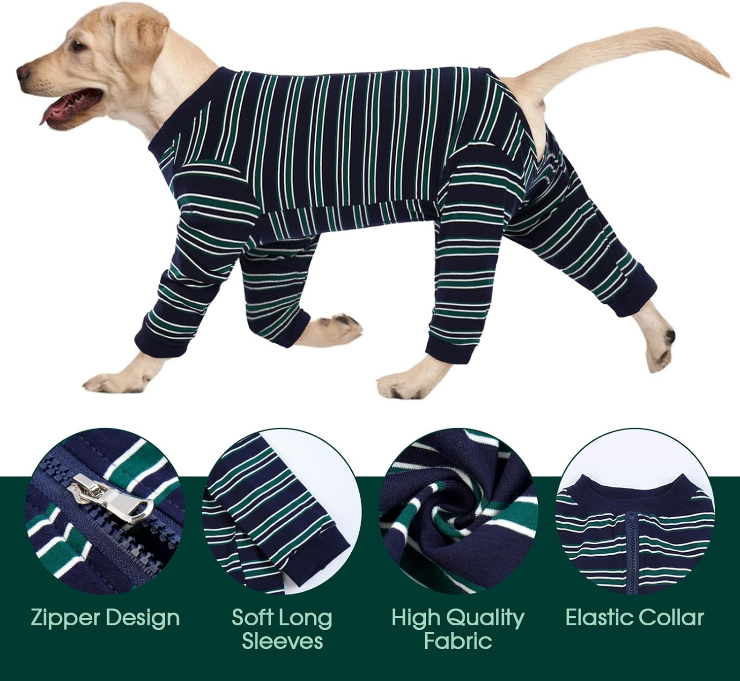 Следоперативно боди Kuoser за големи кучета, еднокомпонентно хирургично боди за мъжки кучета (кастрация), боди за кучета с крачоли, дълги ръкави за женски кучета, алтернатива на шина за врата, XL